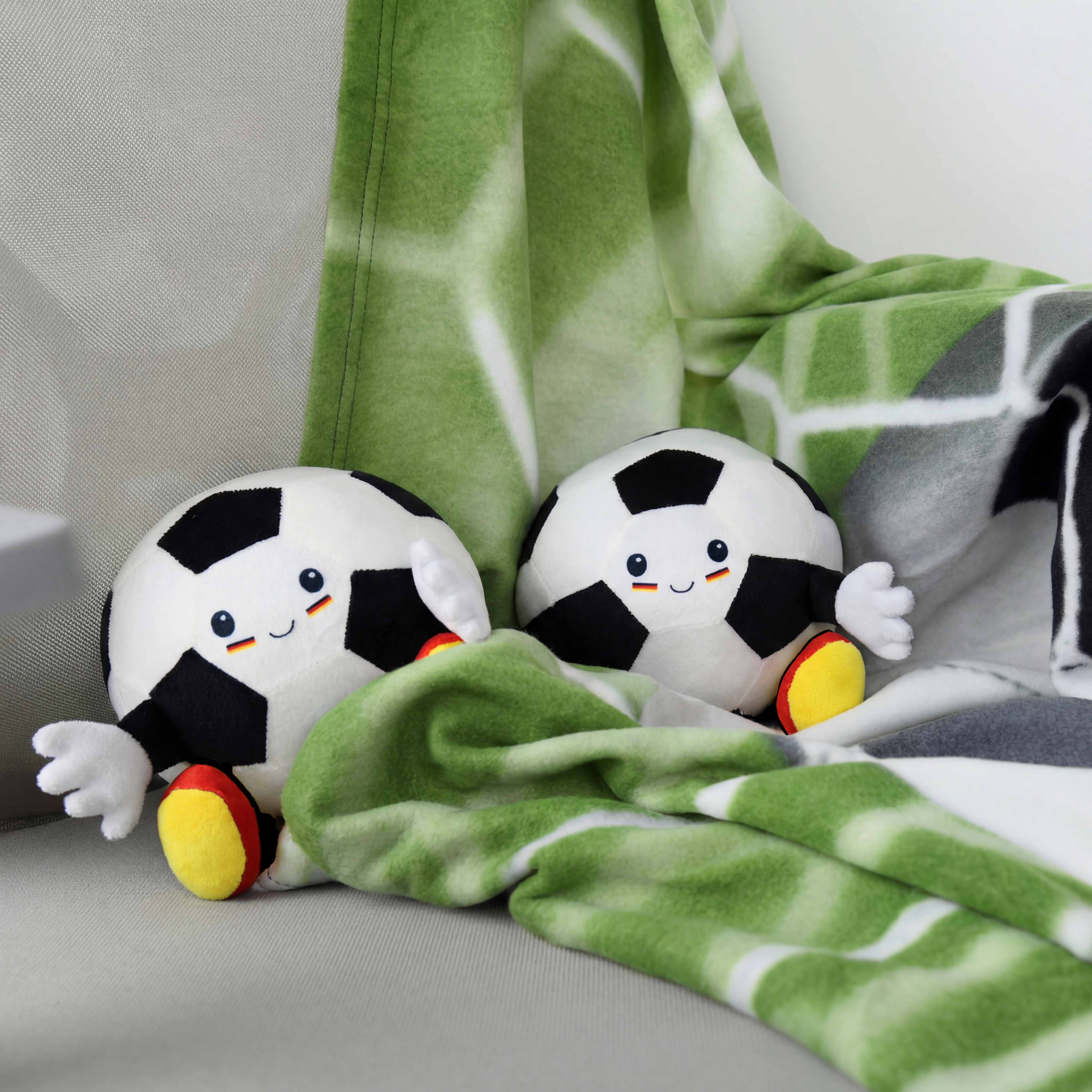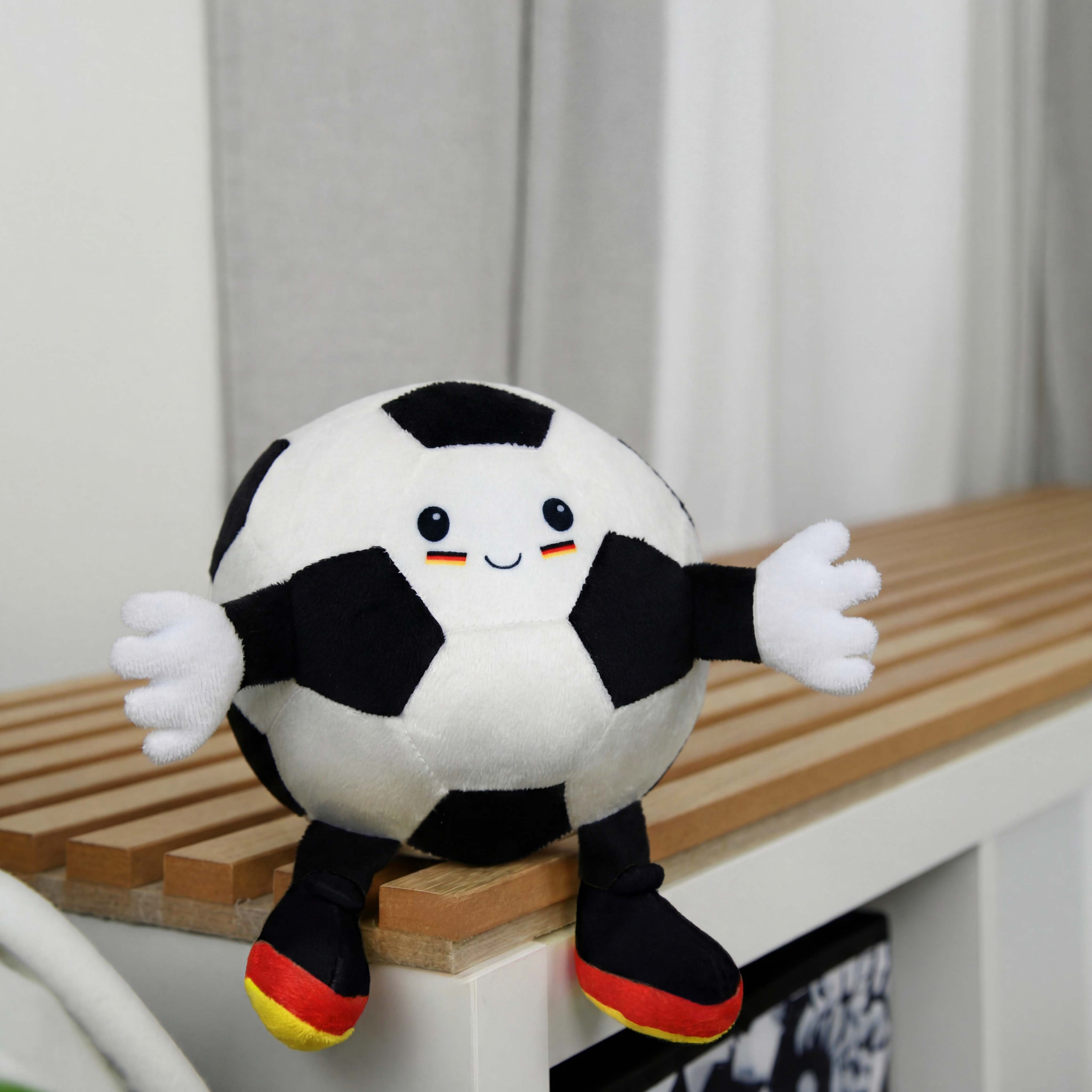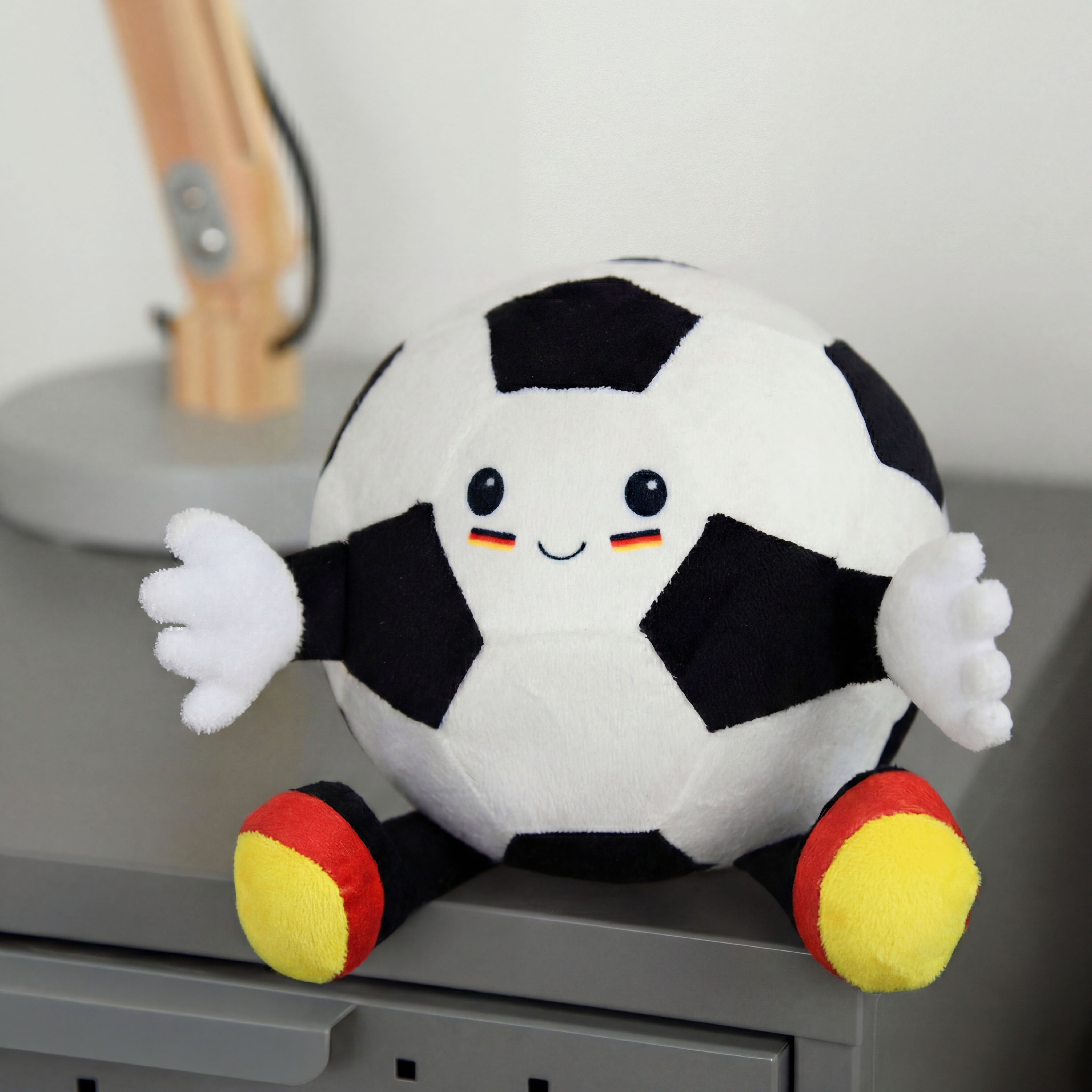 Kleines Kissen, große Fanliebe: Das 3D Ball Formkissen Ole Olé Olé ist ein süßer Hingucker für alle Fußballbegeisterten. In Ballform gestaltet und mit freundlichem Gesicht sowie kleinen Armen und Beinen sorgt es sofort für gute Laune – perfekt fürs Kinderzimmer, als Deko im Fanbereich oder als kleines Mitbringsel zur nächsten Fußballparty.