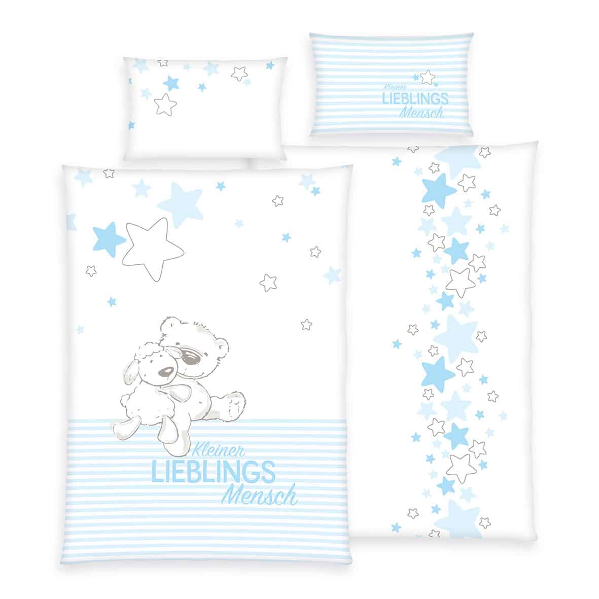 Startseite > Alle Produkte > Baby Textilien > Babybettwäsche > babybest® Bettwäsche – Kleiner Lieblingsmensch Blau