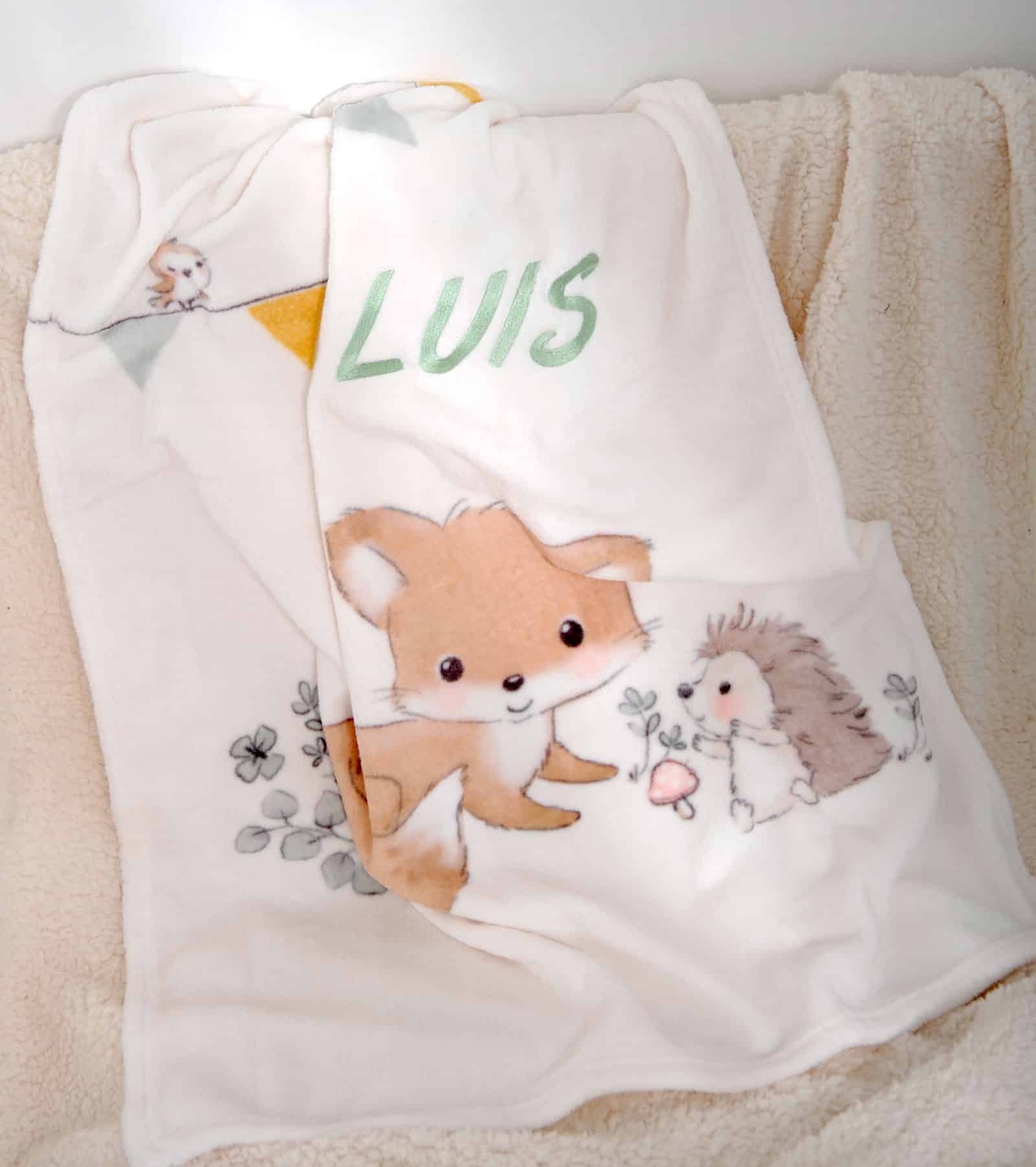 Diese liebevoll gestaltete Kuscheldecke mit süßen Waldfreunden sorgt für Wärme und Geborgenheit im Kinderzimmer und unterwegs.