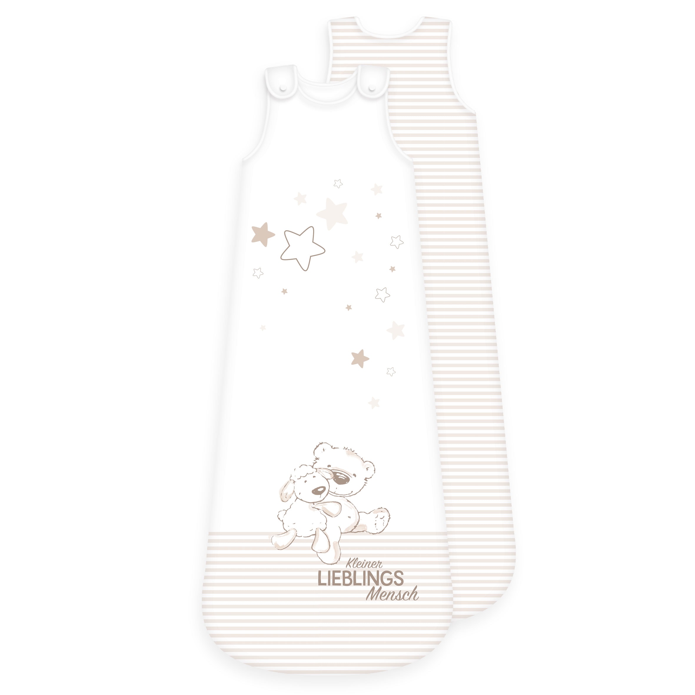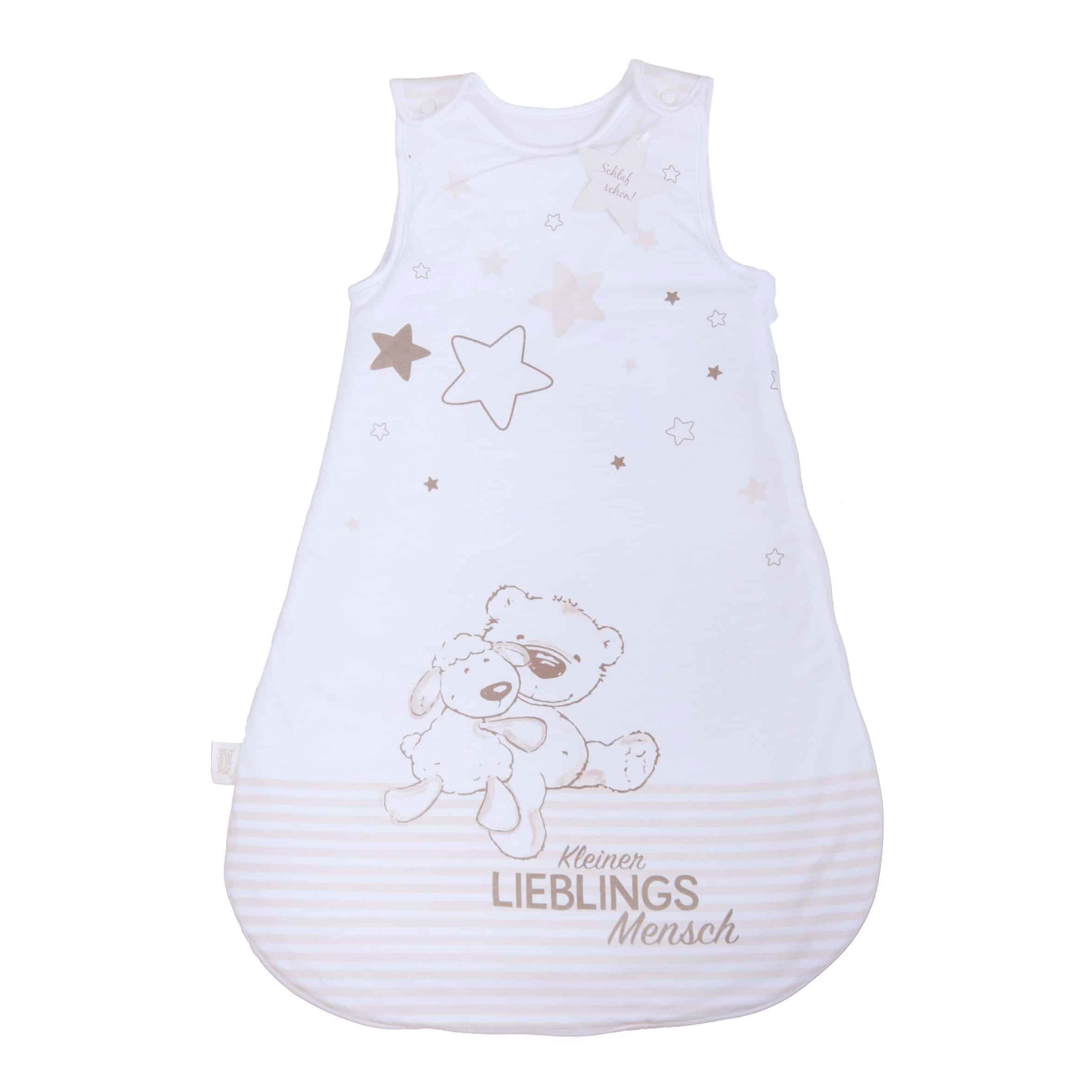 Startseite > Alle Produkte > Baby Textilien > Babyschlafsäcke > babybest® Schlafsack ‘Kleiner Lieblingsmensch Beige’ – 70×45, 90×45 oder 110×45 cm, 100% Baumwolle