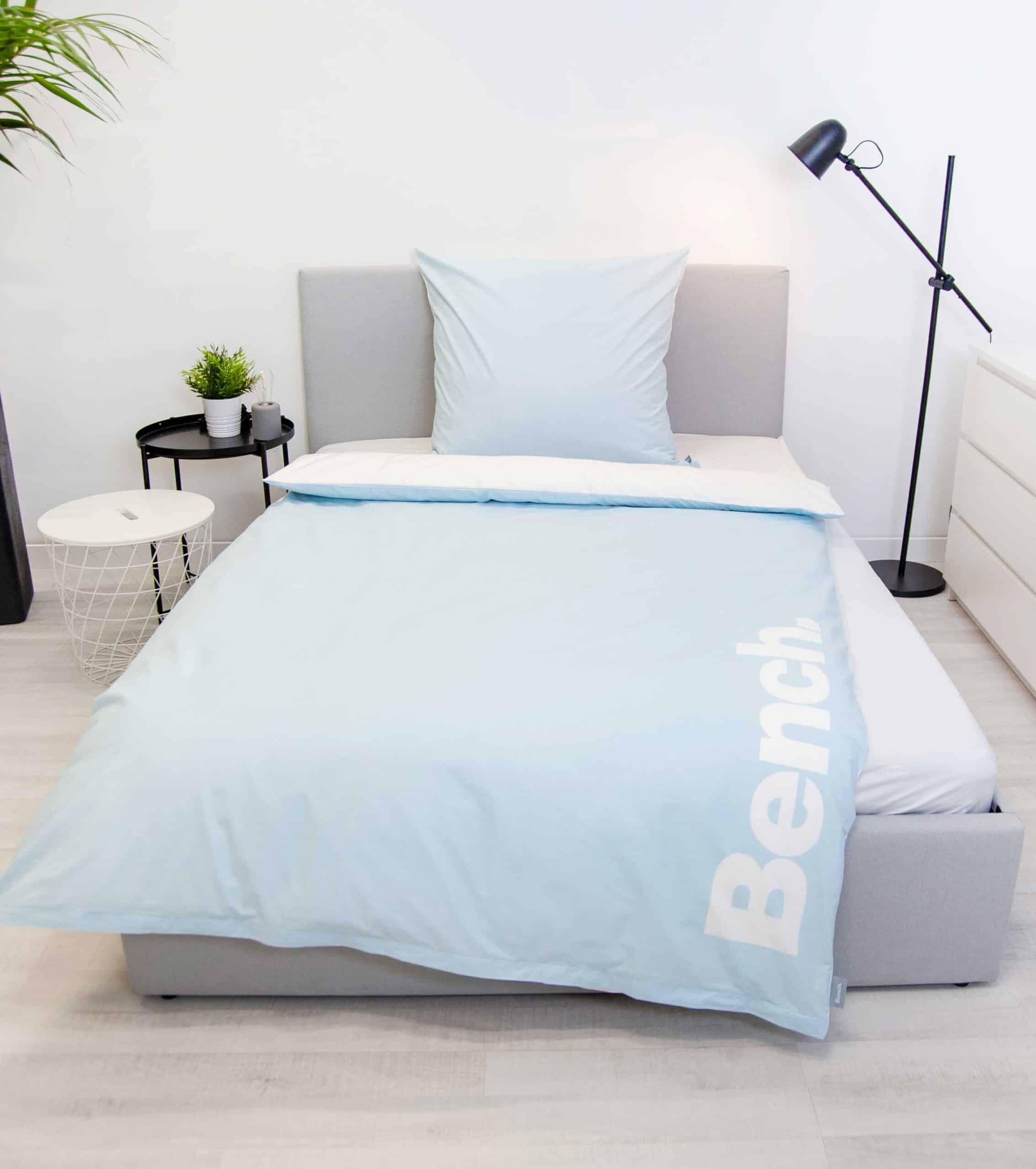 Diese hellblaue Wendebettwäsche mit großem Bench-Logo bringt minimalistischen Stil ins Schlafzimmer. Aus 100 % Baumwolle in Renforcé-Qualität gefertigt – ideal für alle, die es klar und hochwertig mögen.