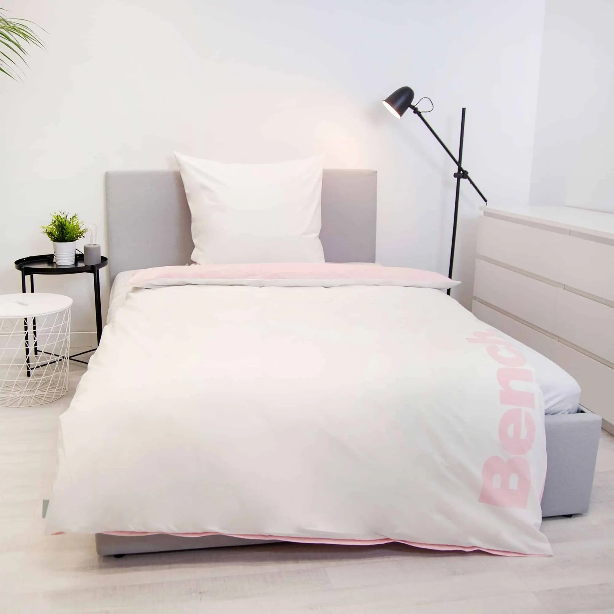 Diese hellrosa Wendebettwäsche mit großem Bench-Logo bringt minimalistischen Stil ins Schlafzimmer. Aus 100 % Baumwolle in Renforcé-Qualität gefertigt – ideal für alle, die es klar und hochwertig mögen.