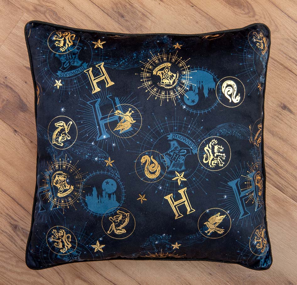 Dieses dekorative Kissen mit den detailreichen Wappen der vier Hogwarts-Häuser bringt magische Stimmung in dein Zuhause.