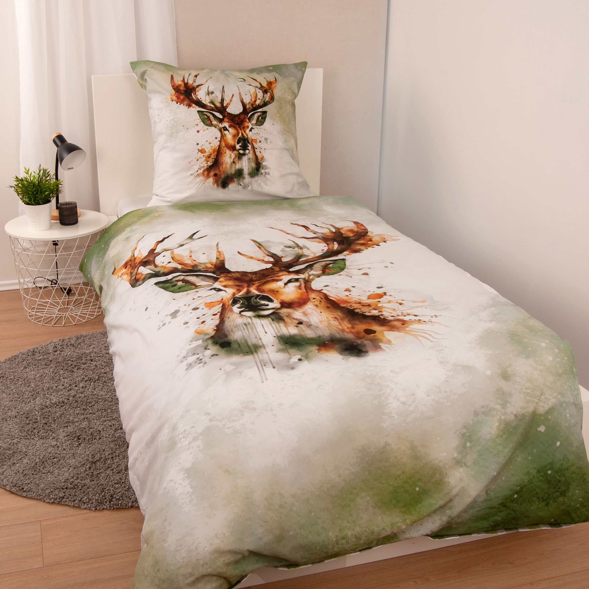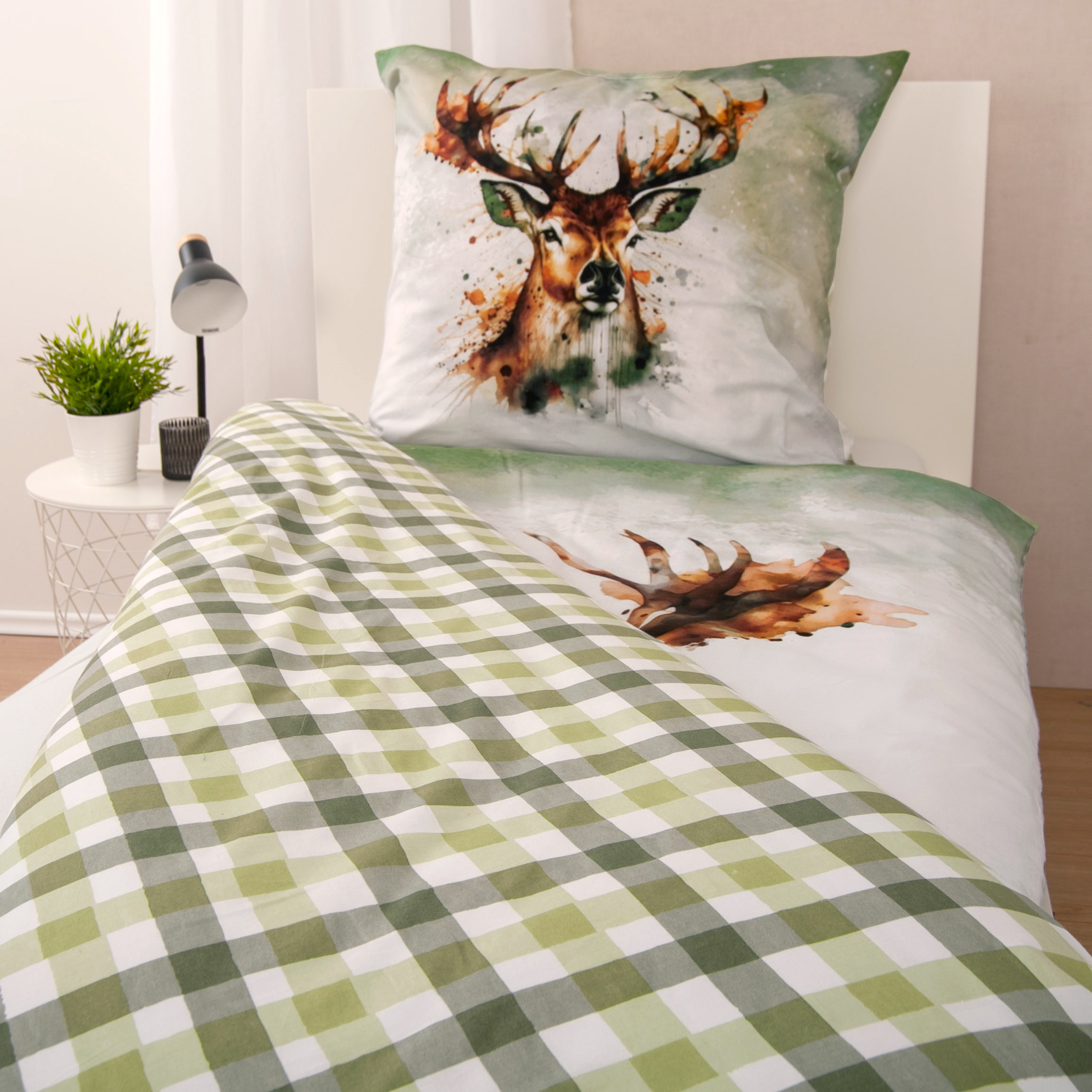 Startseite > Alle Produkte > Bettwäsche > Ganzjahresbettwäsche > HERDING HOME Bettwäsche-Set ‘Hirsch’ – 135×200 cm, 100% Baumwolle, Renforcé