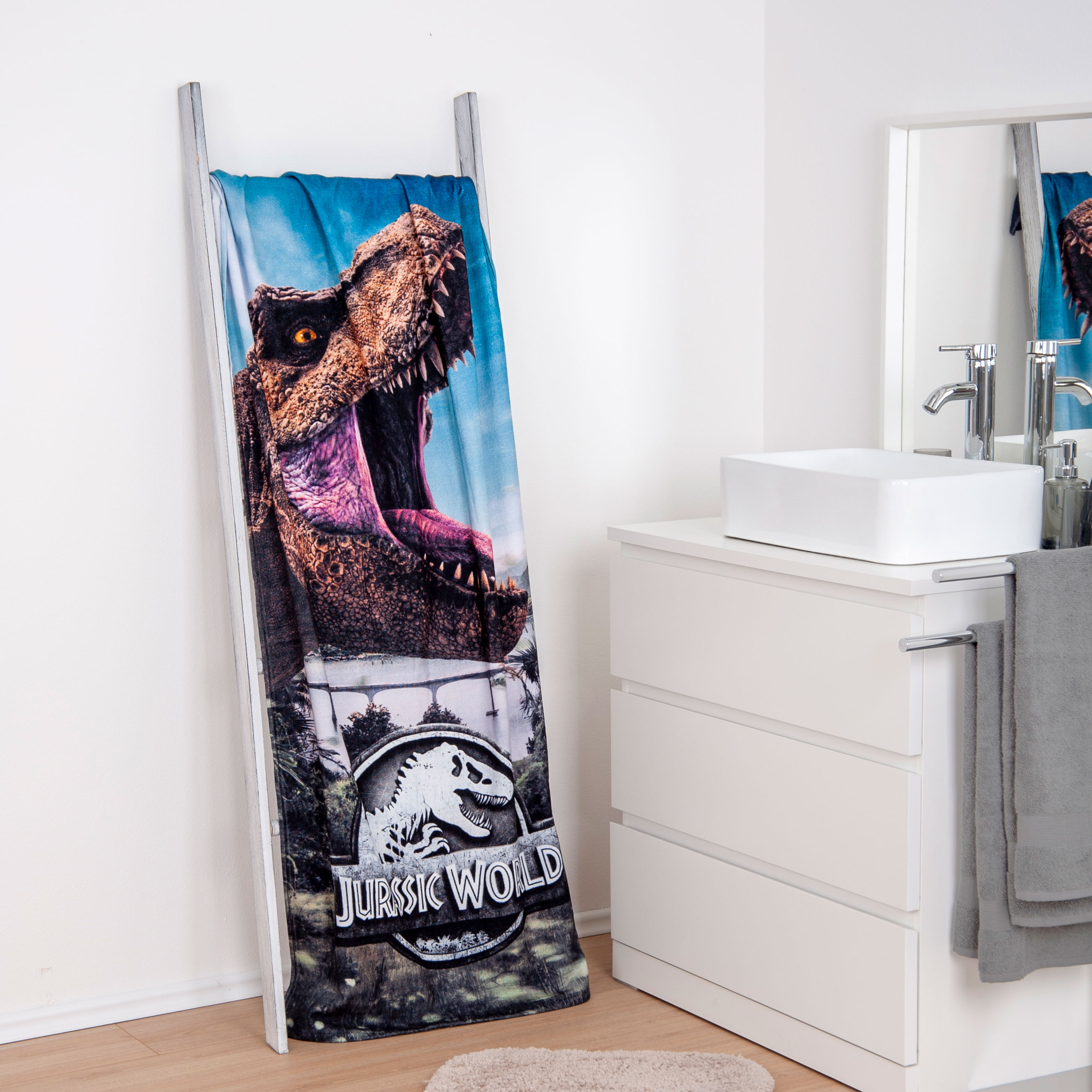 Dieses Handtuch mit aufregendem Jurassic World Motiv begeistert kleine Dinosaurier-Fans im Bad, am Strand oder im Schwimmbad.