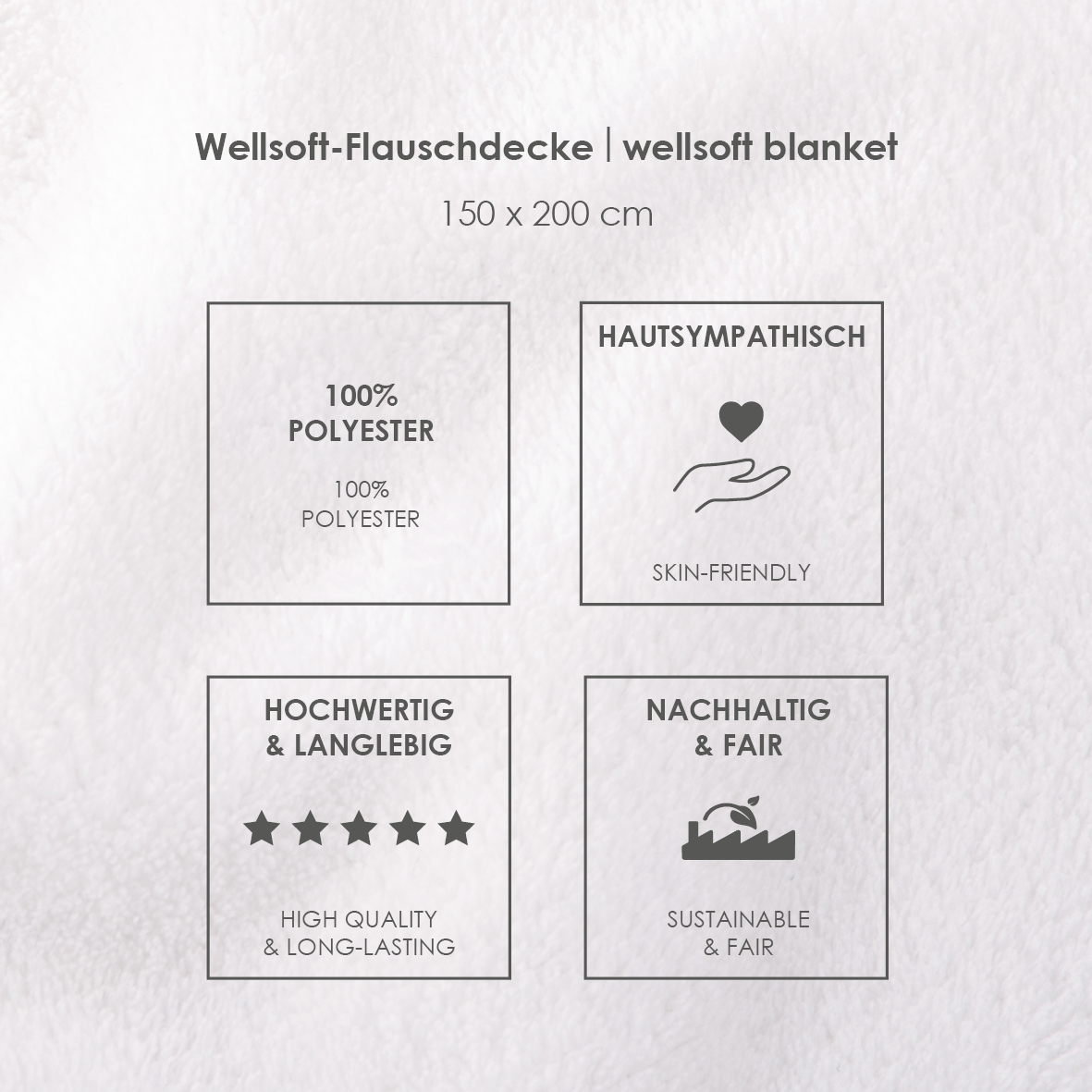 Wellsoft-Qualität ist für ihre außergewöhnliche Weichheit und Komfort bekannt. Sie besteht aus speziell entwickelten Mikrofasern, die sich durch ihre Langlebigkeit und eine natürliche isolierende Eigenschaft auszeichnen, die dazu beitragt, Wärme zu speichern. Wellsoft-Decken haben eine flauschige und voluminöse Textur und sind besonders sanft zur Haut.