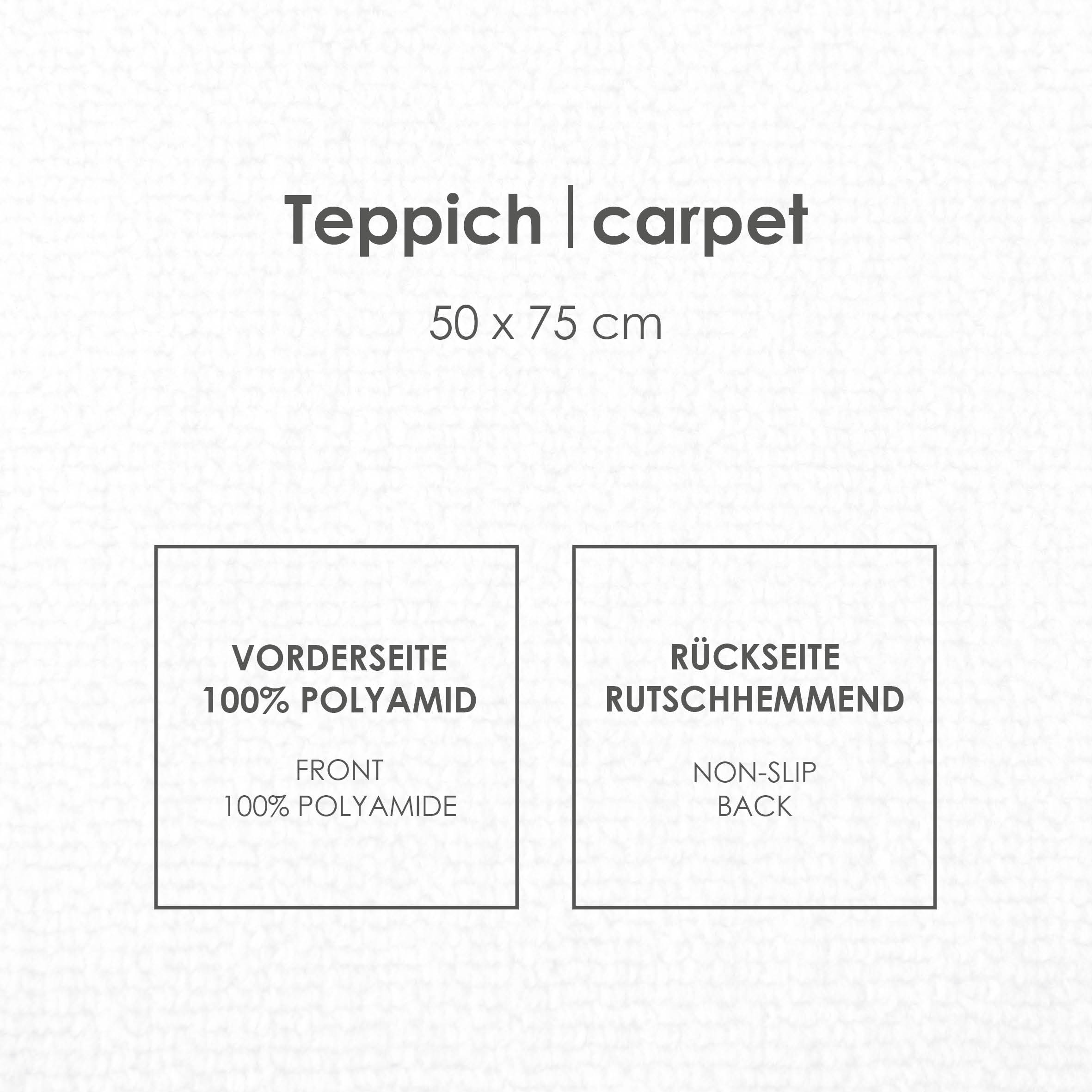 Mit dem Format 50×75 cm bietet die Matte eine praktische Größe für viele Bereiche. Die rutschfeste Rückseite sorgt für sicheren Halt auf glatten Böden, während die robuste Oberfläche ideal für den Alltag geeignet ist.