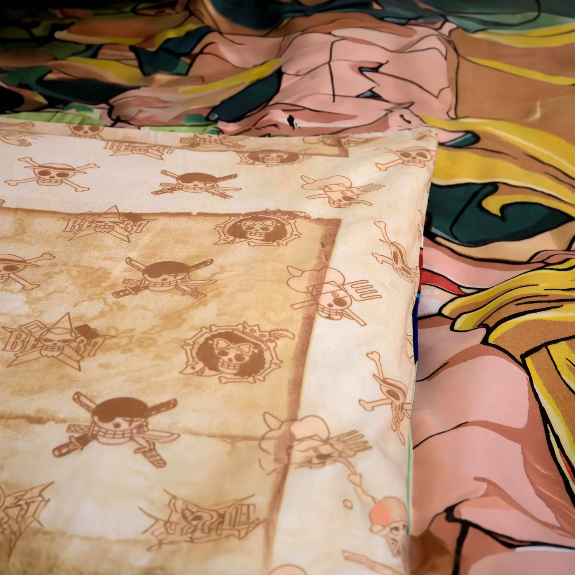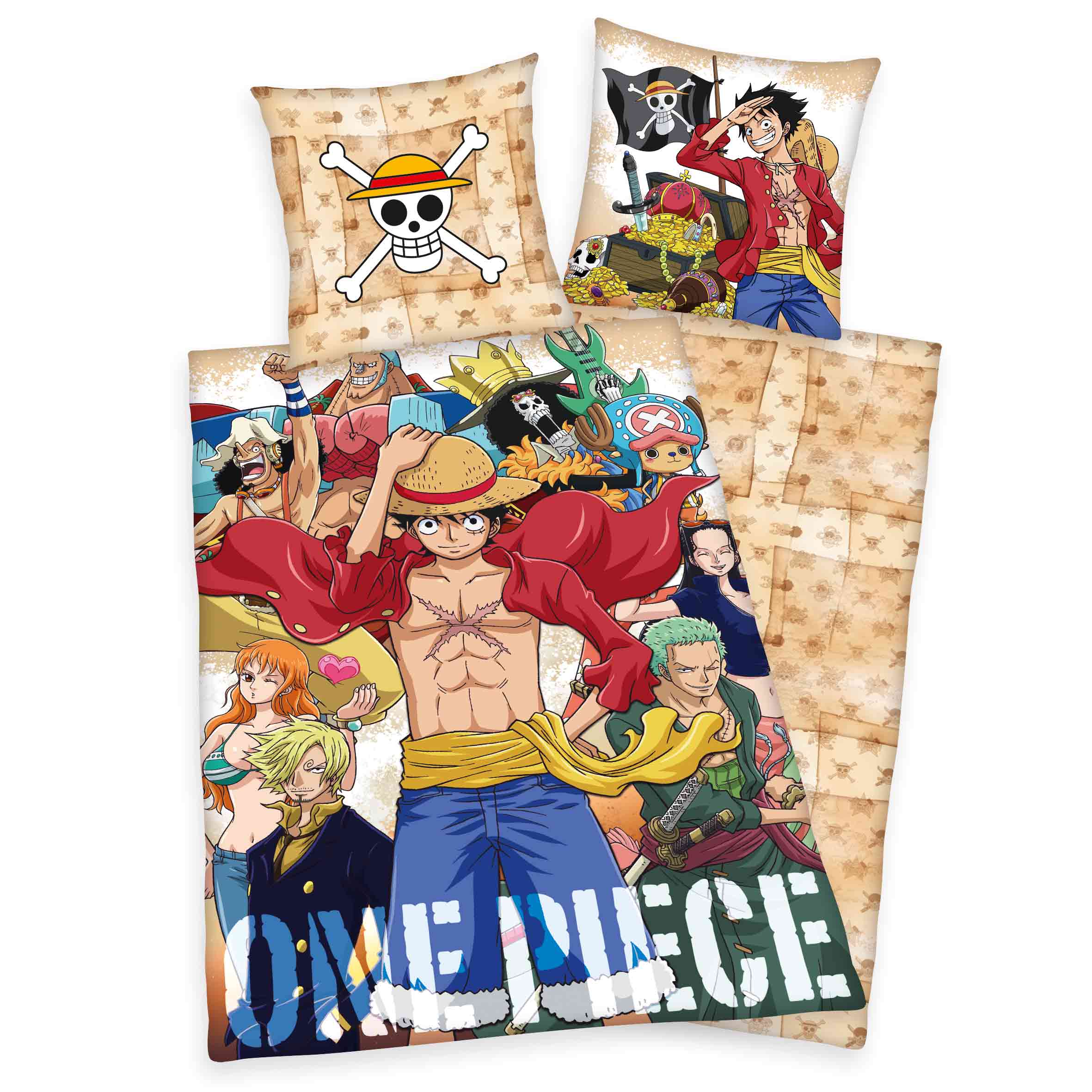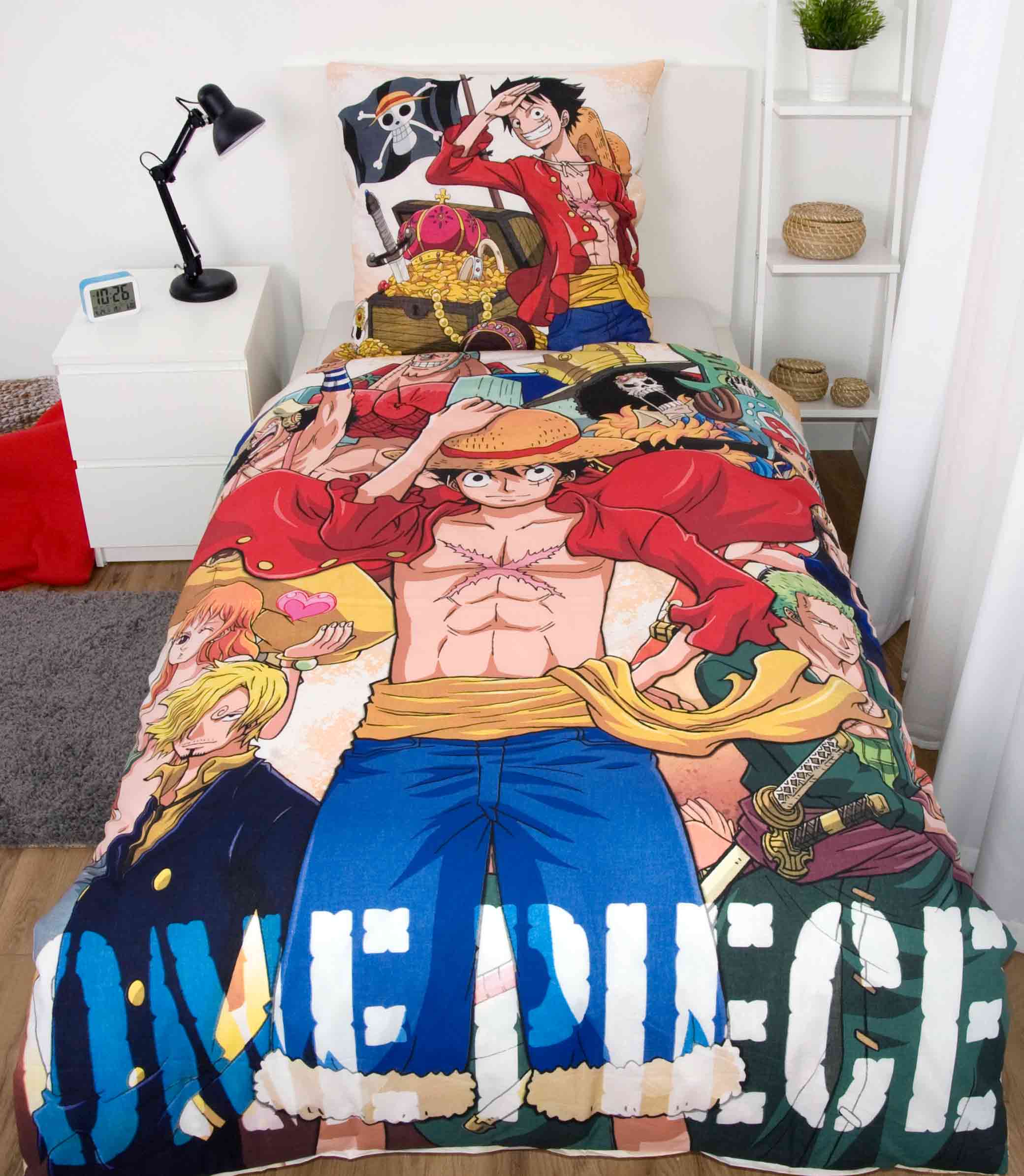 Diese coole Bettwäsche mit Monkey D. Ruffy aus der beliebten Serie One Piece sorgt für spannende Nächte voller Abenteuer.