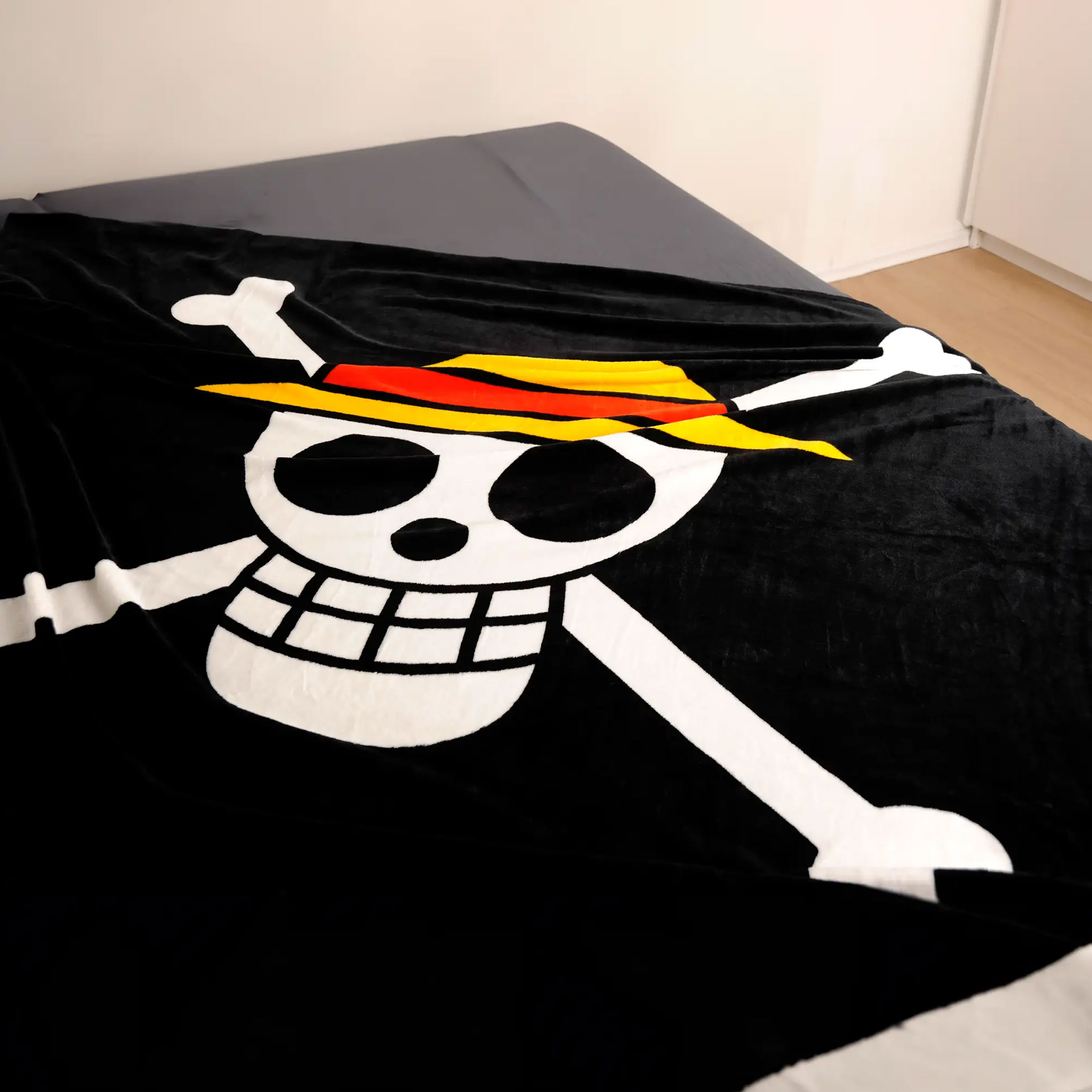 Die coole One Piece – Totenkopf Decke besteht aus 100% Polyester und ist durch Ihre Wellsoft-Qualität besonders kuschelig. Das atemberaubende Totenkopf-Design, das die unverkennbaren Merkmale der Strohhutpiraten trägt, macht diese Decke zu einem wahren Schatz für Fans der Serie. Ob du dich in die Geschichten von Monkey D. Ruffy, Zorro und Nami vertiefst oder einfach nur gemütlich vor dem Fernseher relaxt – diese Decke wird dein treuer Begleiter sein. Gestalte dein Zuhause mit dieser einzigartigen One Piece Decke und zeige deine Leidenschaft für die legendäre Serie.