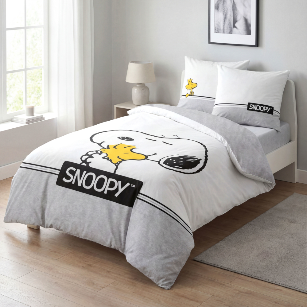 Snoopy Bettwäsche-Set ‘Classic Grey’ – 135×200 cm, Renforcé