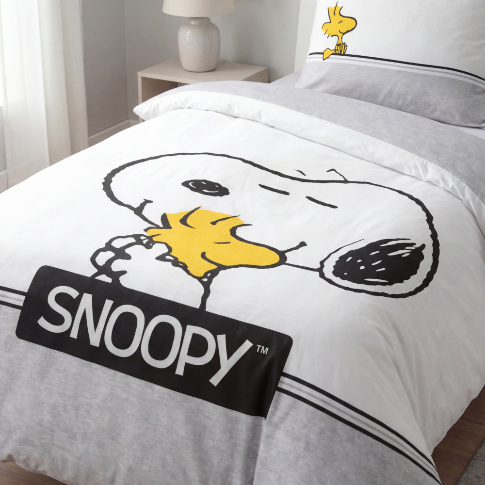 Diese Bettwäsche bringt Snoopy und Woodstock direkt ins Schlafzimmer. Ideal für alle, die den Charme der Peanuts lieben.