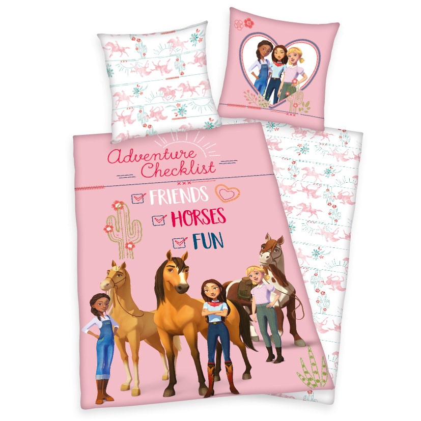 Diese Bettwäsche mit Spirit und Lucky begleitet kleine Pferdefans auf traumhafte Abenteuerreisen.