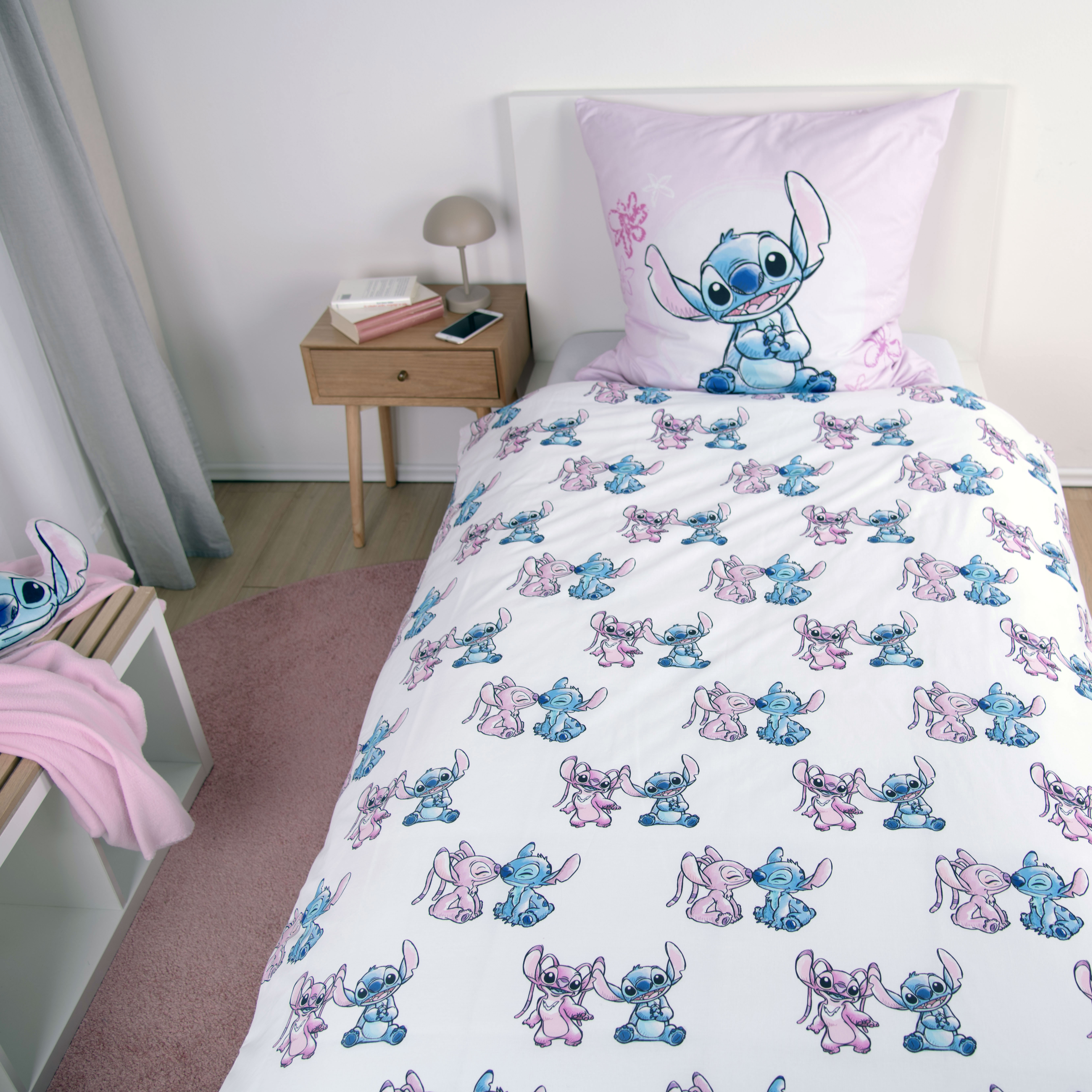 Die Winterbettwäsche ‘Stitch & Angel’ sorgt für süße Träume voller Disney-Magie.