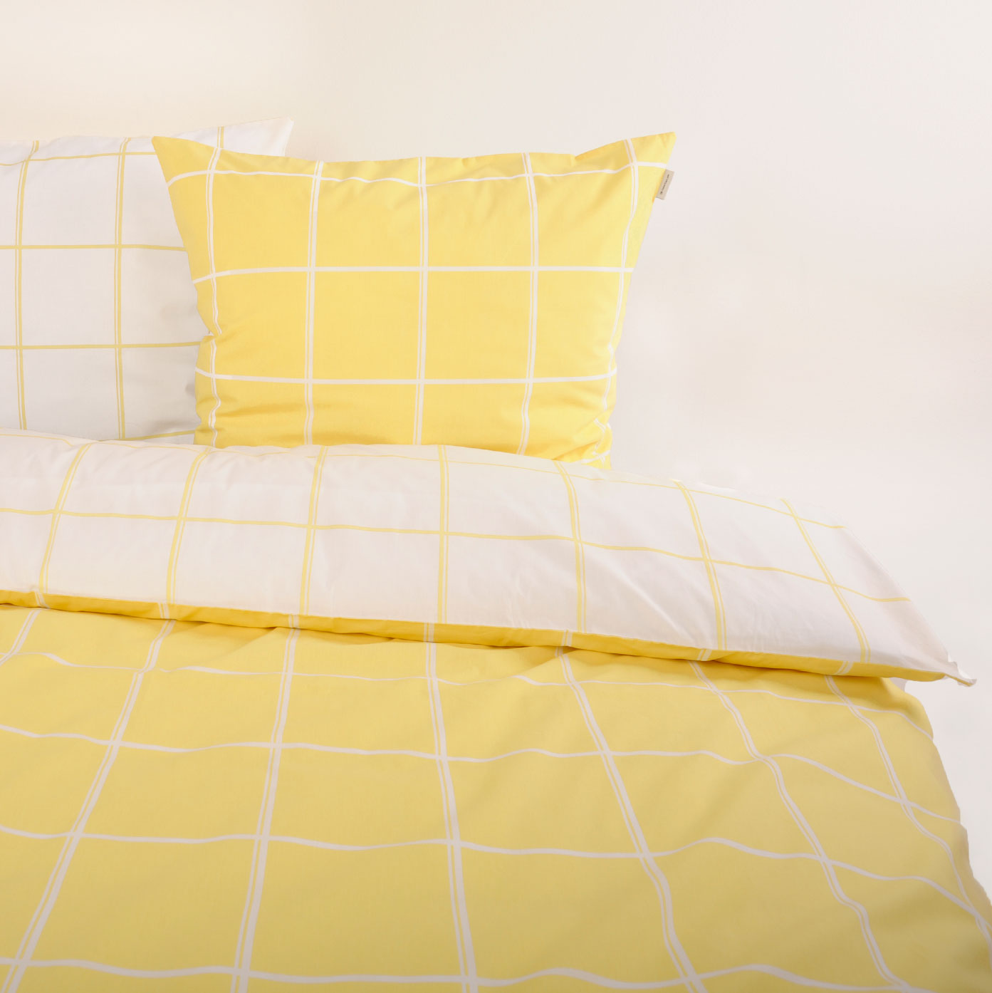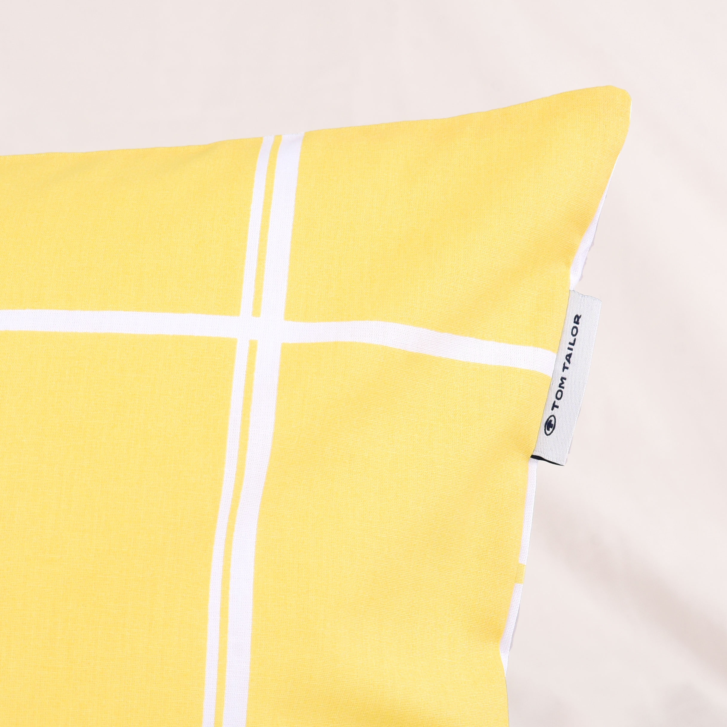Diese stilvolle Bettwäsche von TOM TAILOR im modernen Karo-Design in Light Lemon und Crisp White bringt Helligkeit und frische Akzente in dein Zuhause.