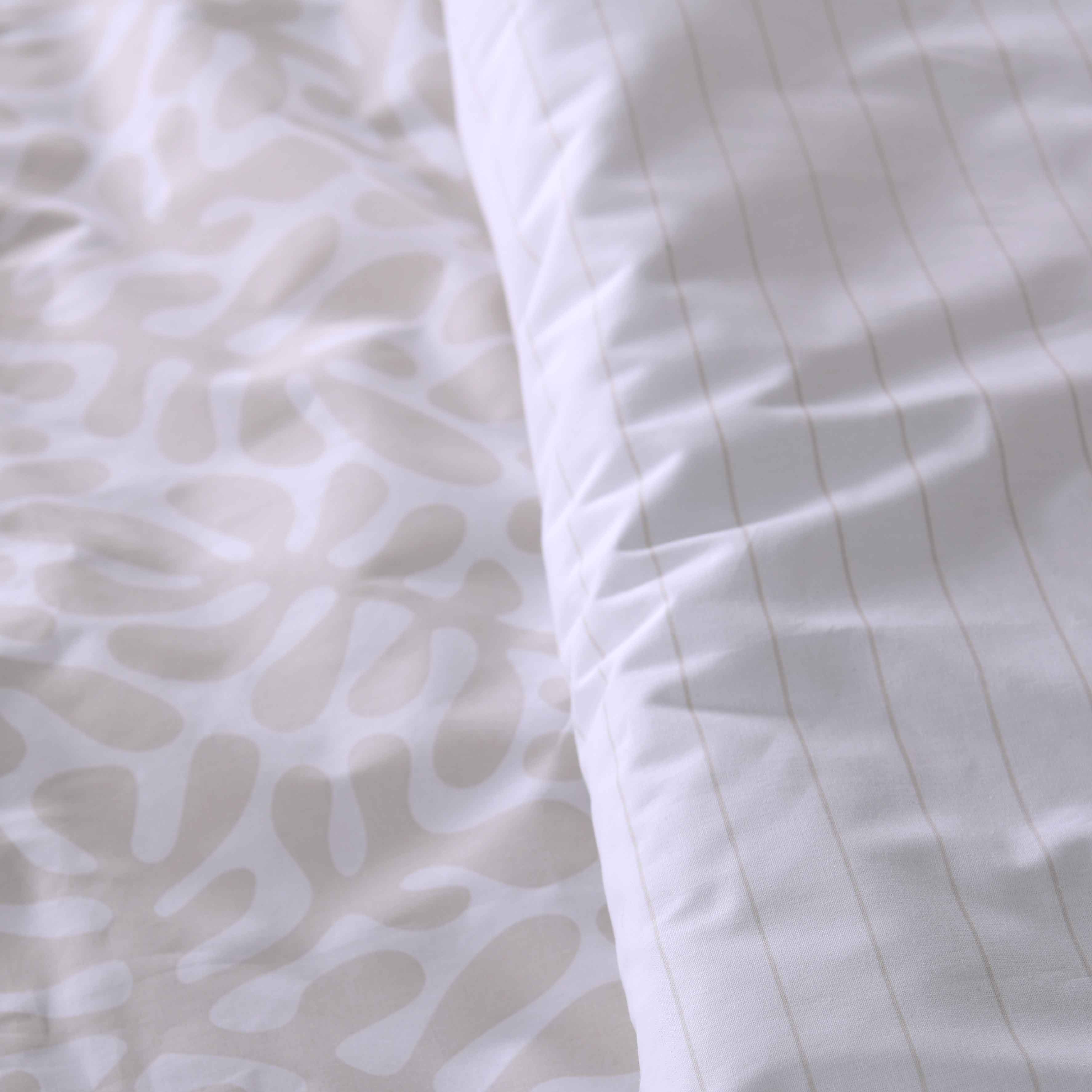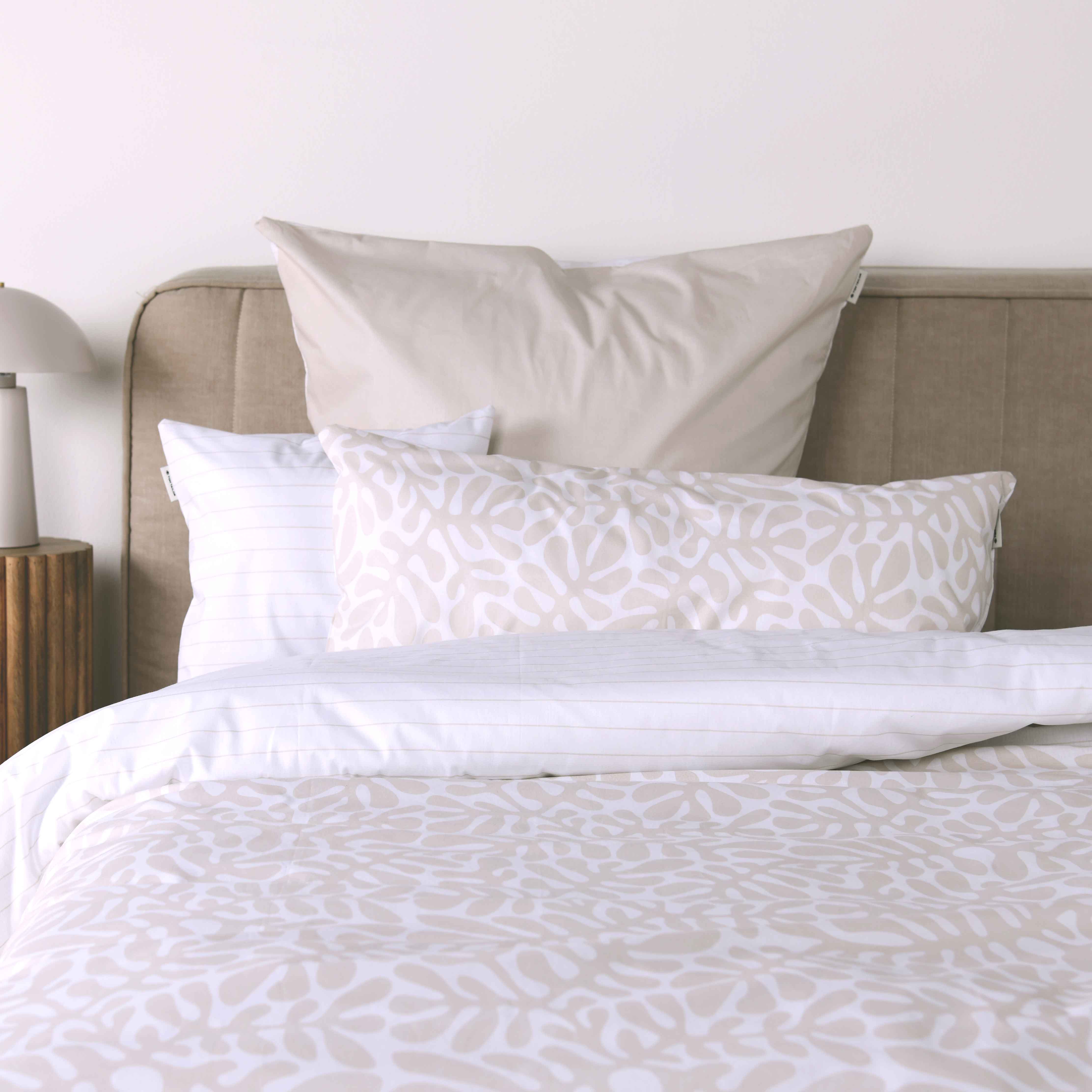 Diese Bettwäsche bringt mit ihrem natürlichen Blätterdesign in sanften Sandtönen Ruhe und Stil in dein Schlafzimmer.