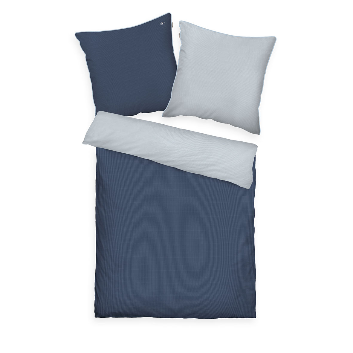 TOM TAILOR Bettwäsche-Set – ‘Fine Stripes Dark Navy & Sky Blue’ – 135×200, 155×220, 140×200 oder 200×220 cm, Satin