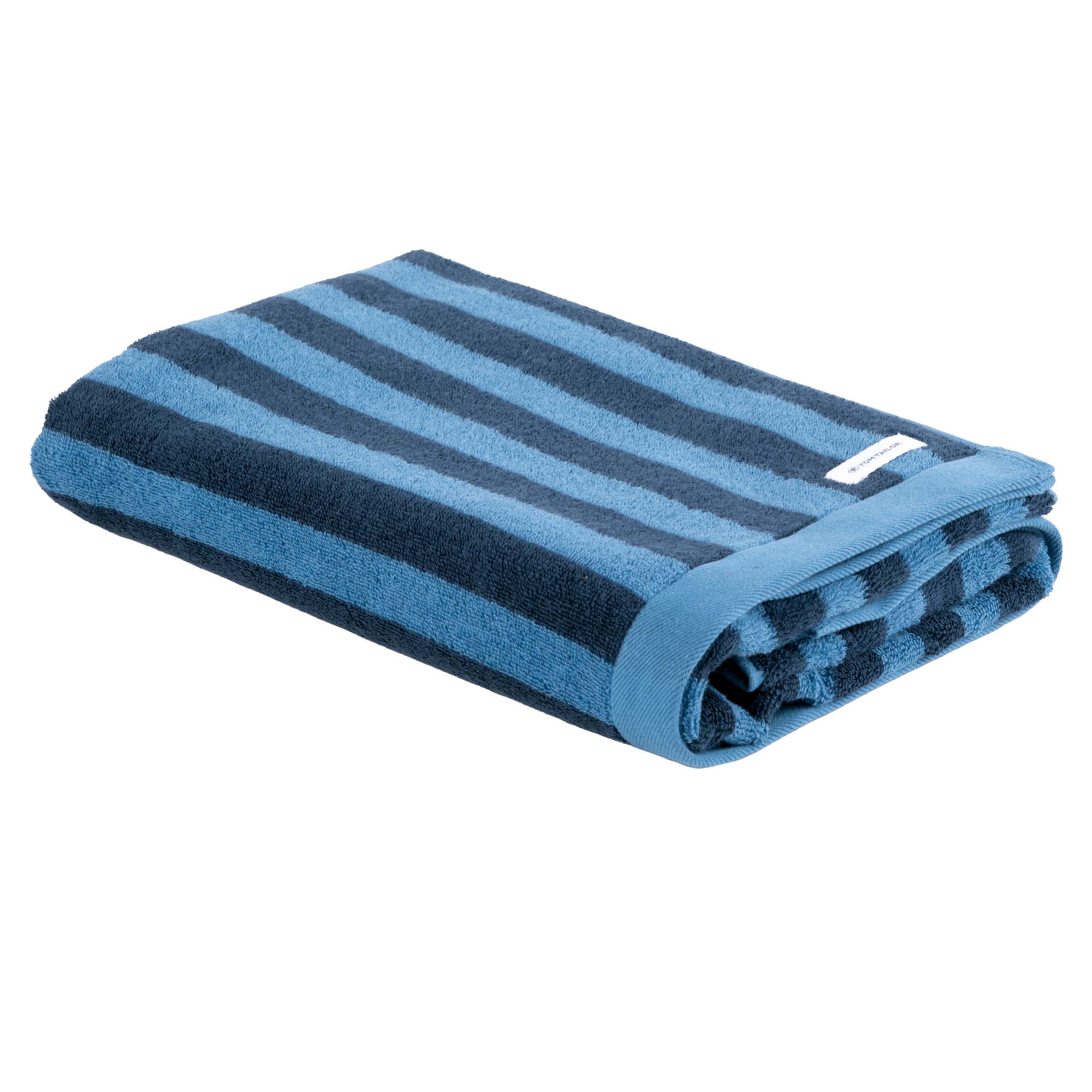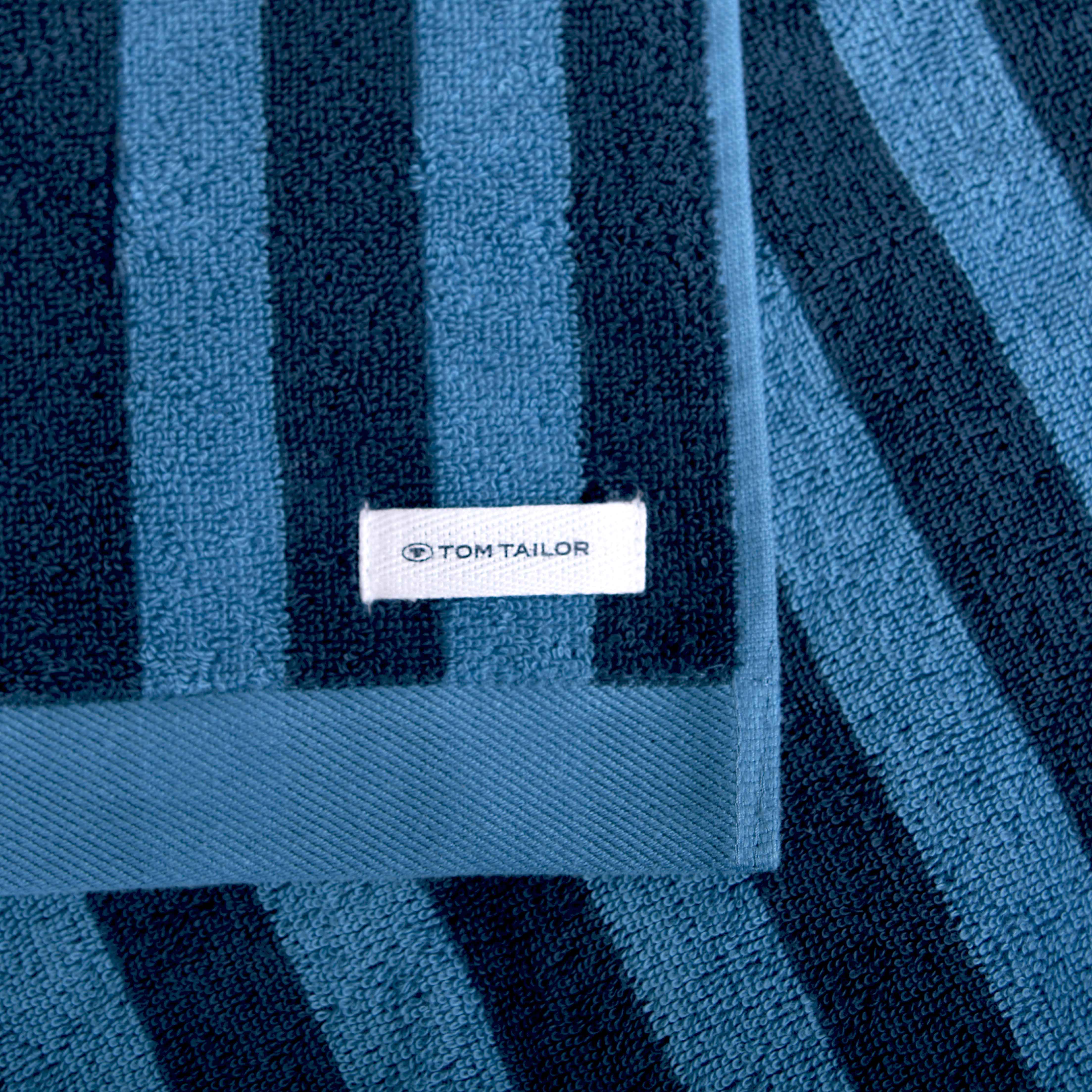 TOM TAILOR Duschtuch ‘Medium Stripes Dark Navy & Cool Blue’ – 70×140 cm, Frottier