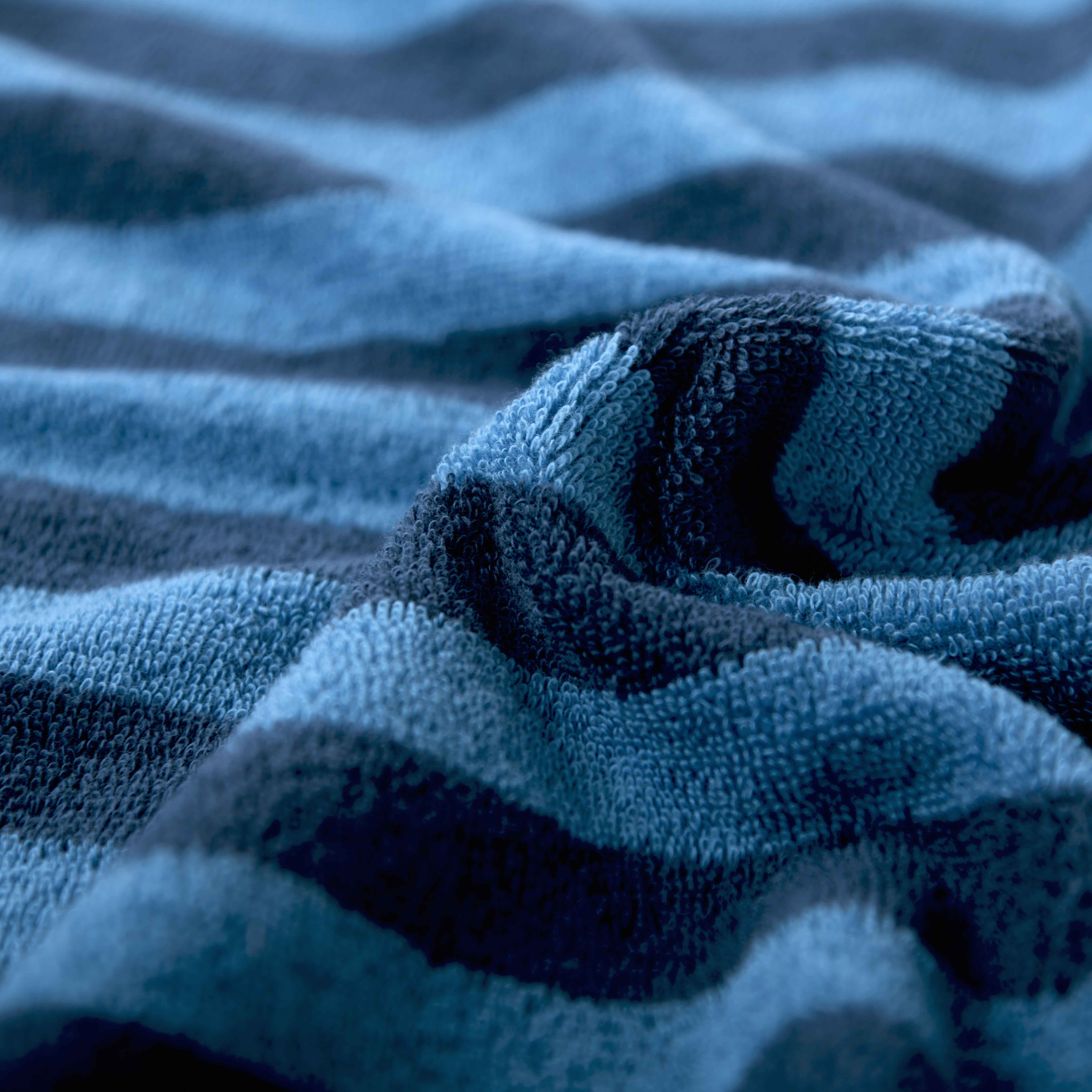Dieses Duschtuch von TOM TAILOR im modernen Streifendesign in Dunkelblau und Cool Blue bringt Farbe ins Bad.