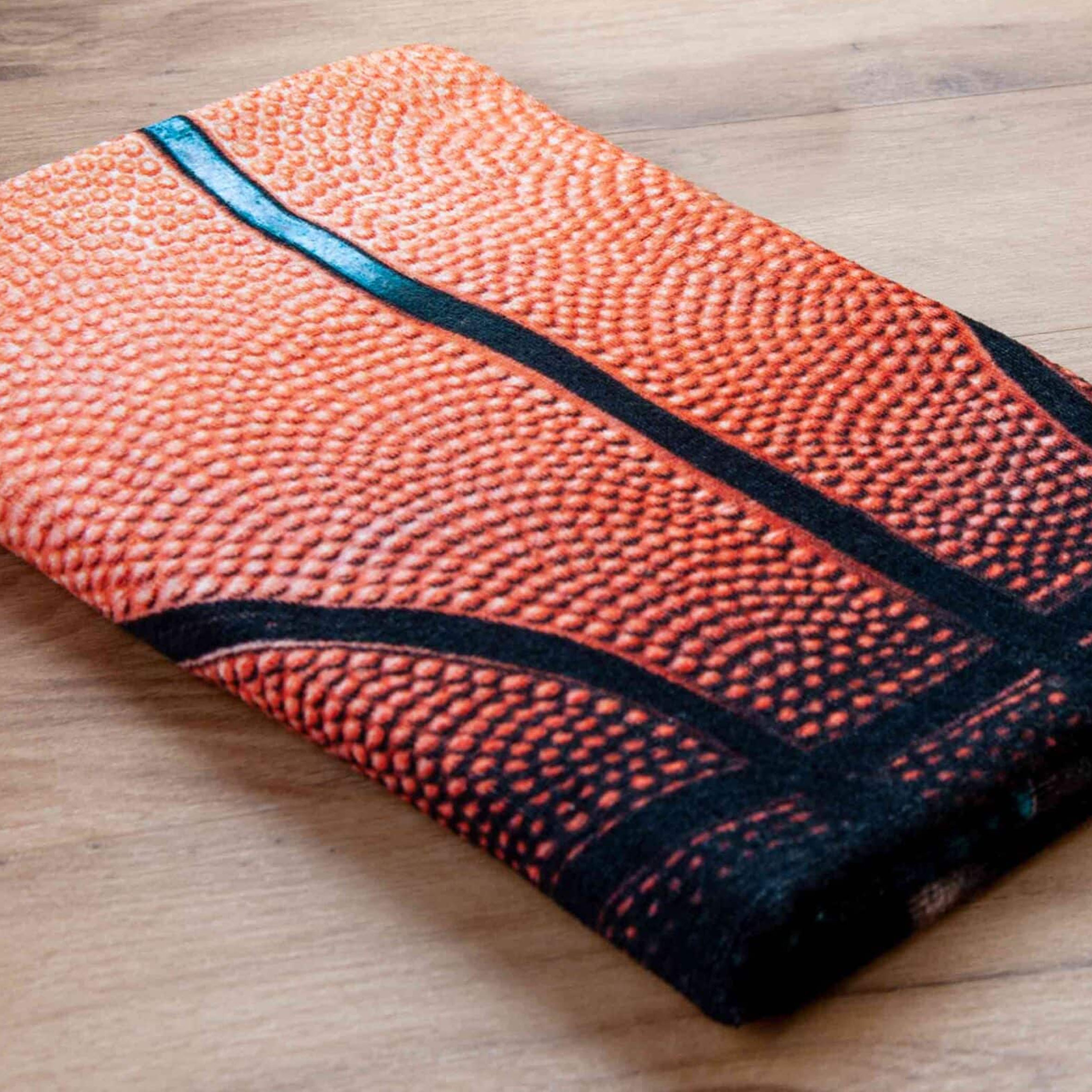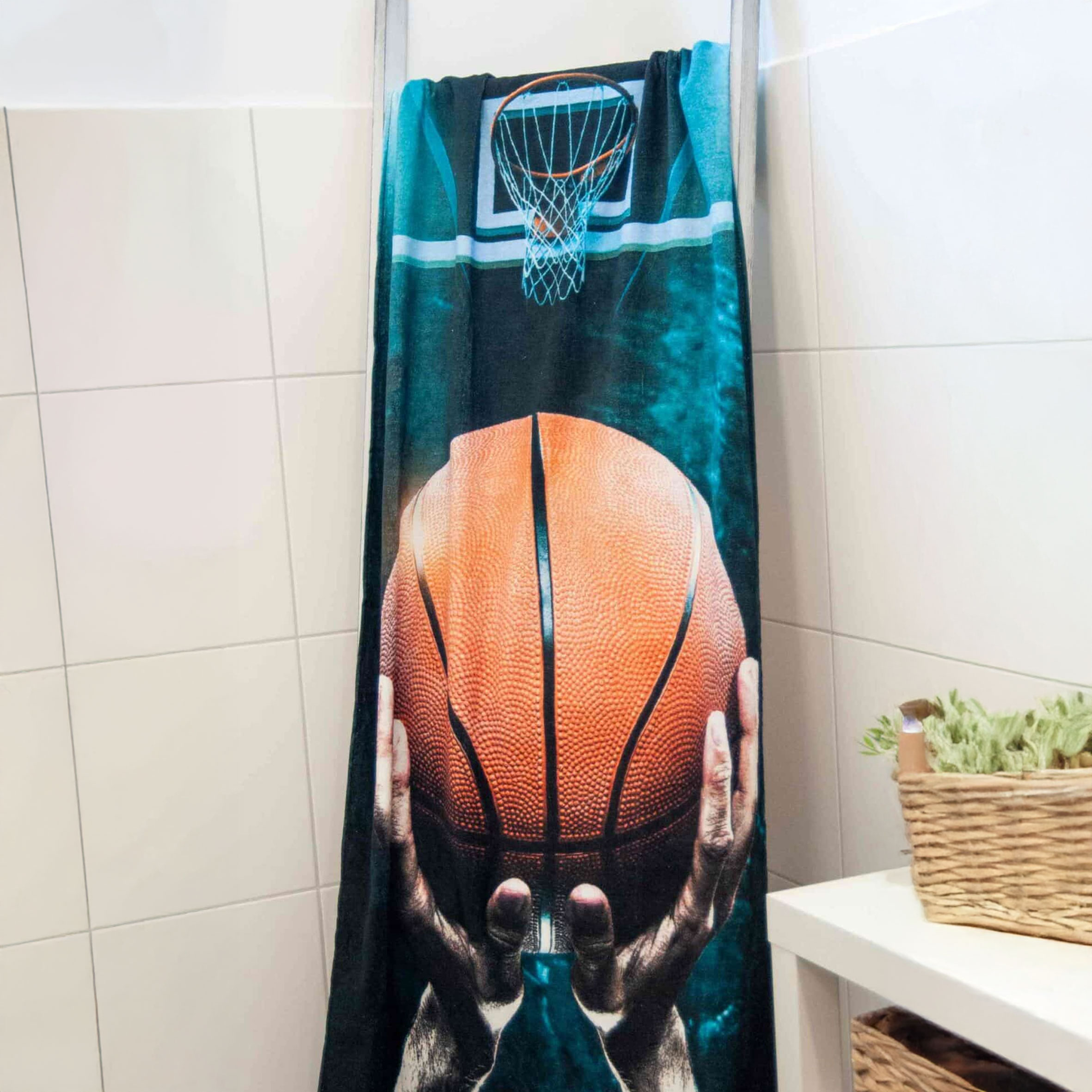 Dieses Badetuch mit sportlichem Basketball-Motiv begleitet junge Sportler ins Schwimmbad, an den Strand oder zu Hause im Bad.