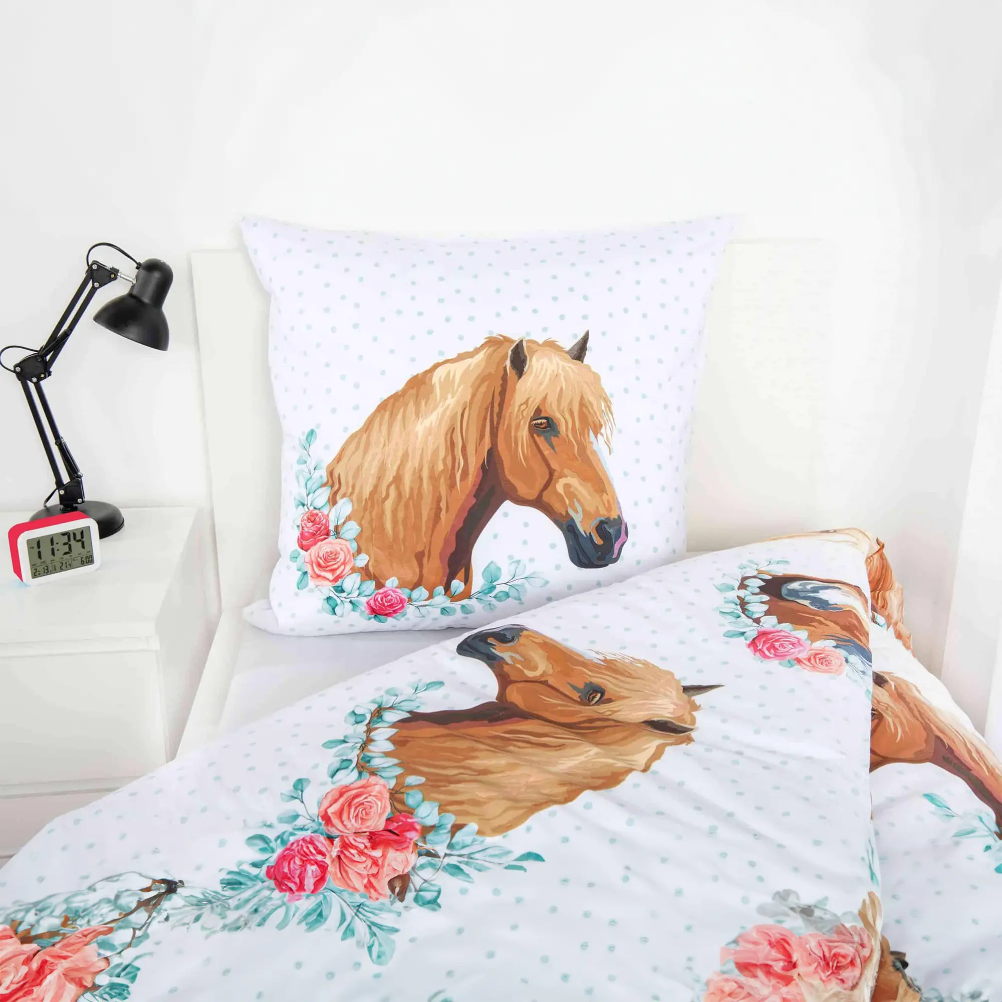 Young Collection Bettwäsche-Set ‘Pferde Rosen’ – 135×200 cm, Renforcé