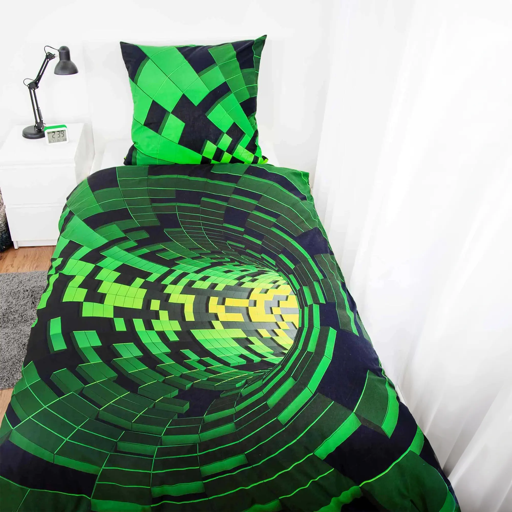 Startseite > Alle Produkte > Bettwäsche > Ganzjahresbettwäsche > Young Collection Bettwäsche-Set ‘Tunnel 3D Effekt Grün’ – 135×200 und 140×200 cm, Renforcé