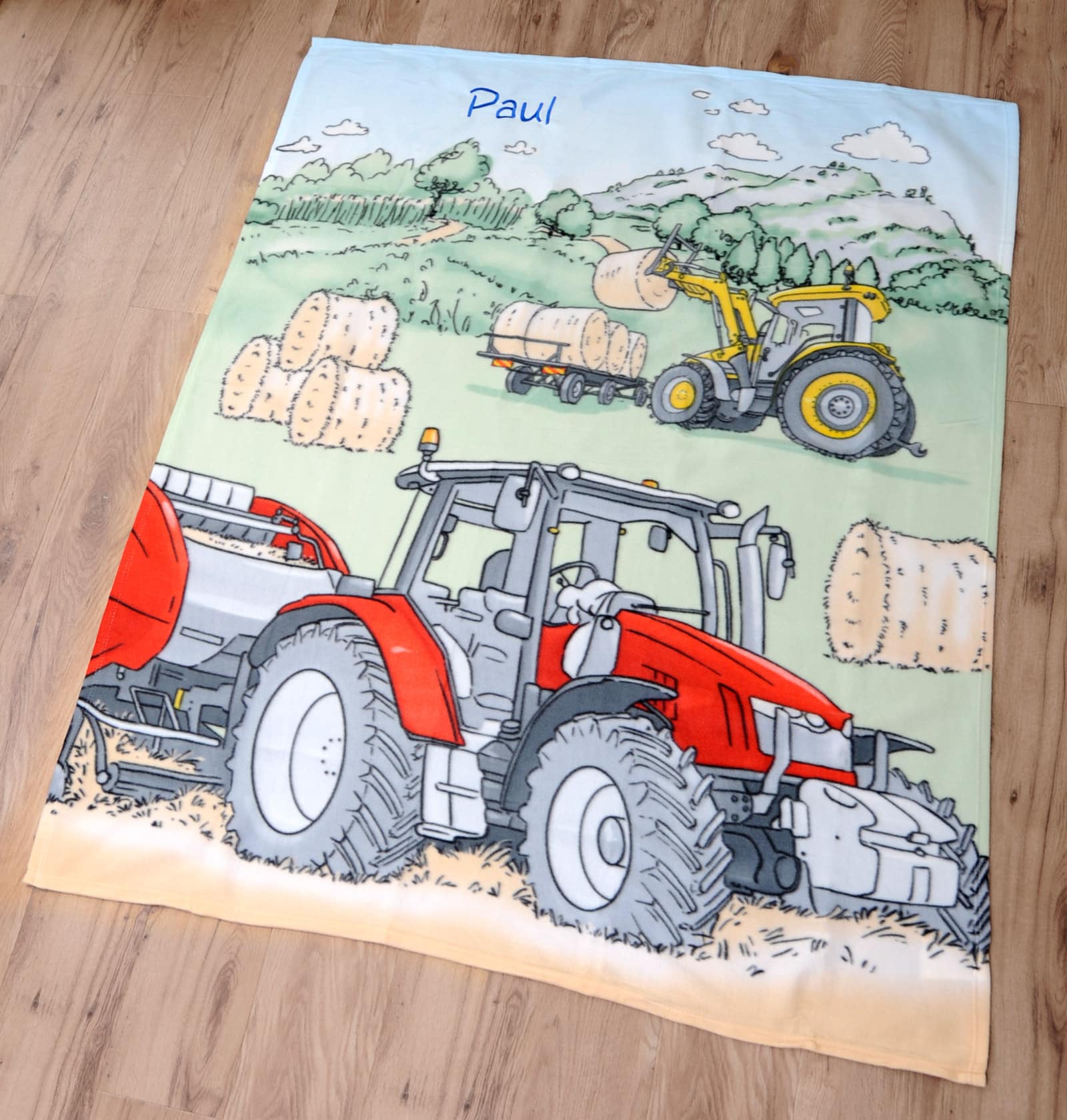 Diese Fleecedecke mit lebendigem Traktor-Motiv bringt ländlichen Charme ins Kinderzimmer. Ideal zum Einkuscheln auf dem Sofa, im Bett oder unterwegs. Ein tolles Geschenk für kleine Landmaschinen-Begeisterte!