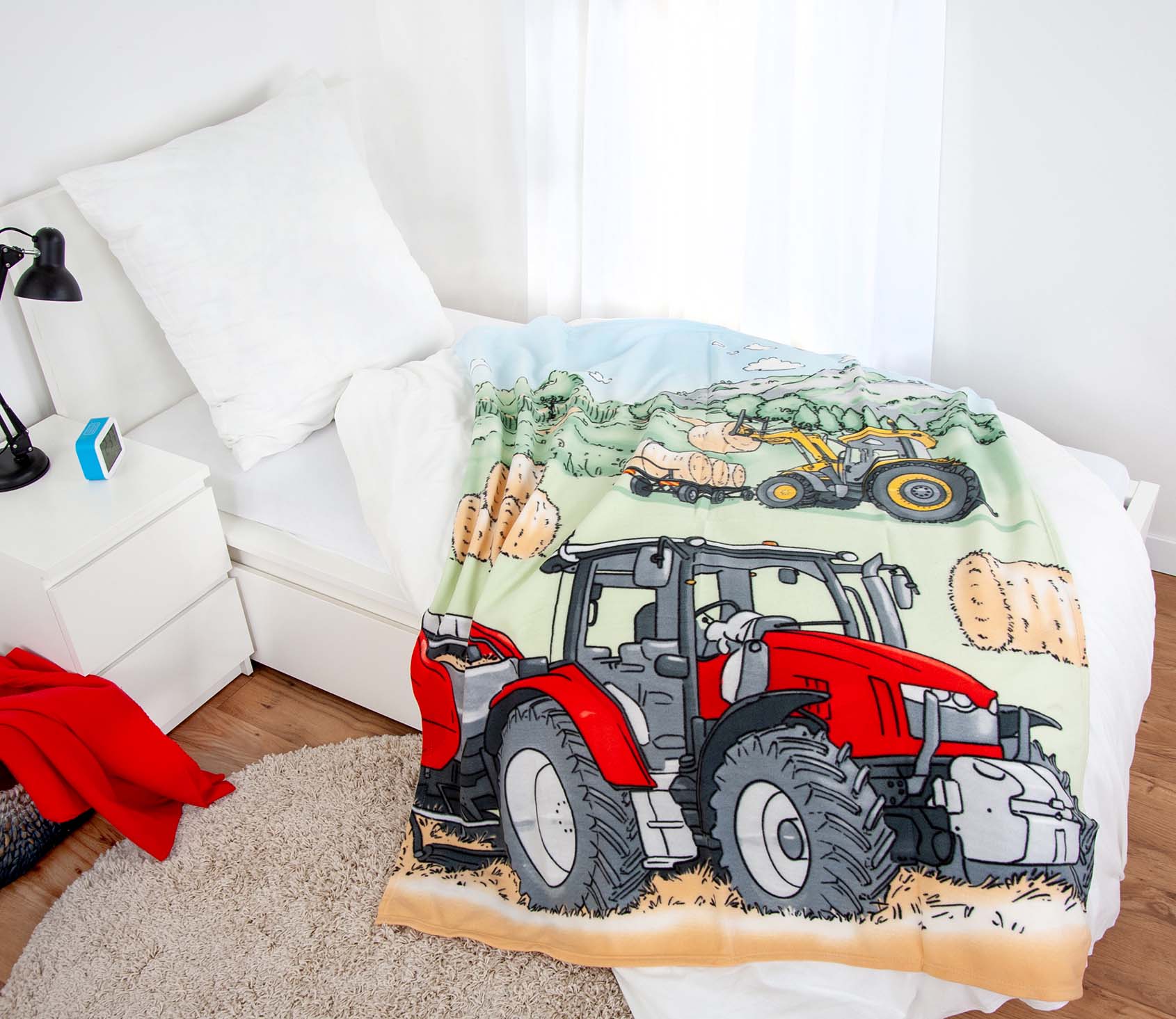 Startseite > Alle Produkte > Decken > Kuscheldecken > Young Collection Fleecedecke ‘Traktor’ – 130×160 cm