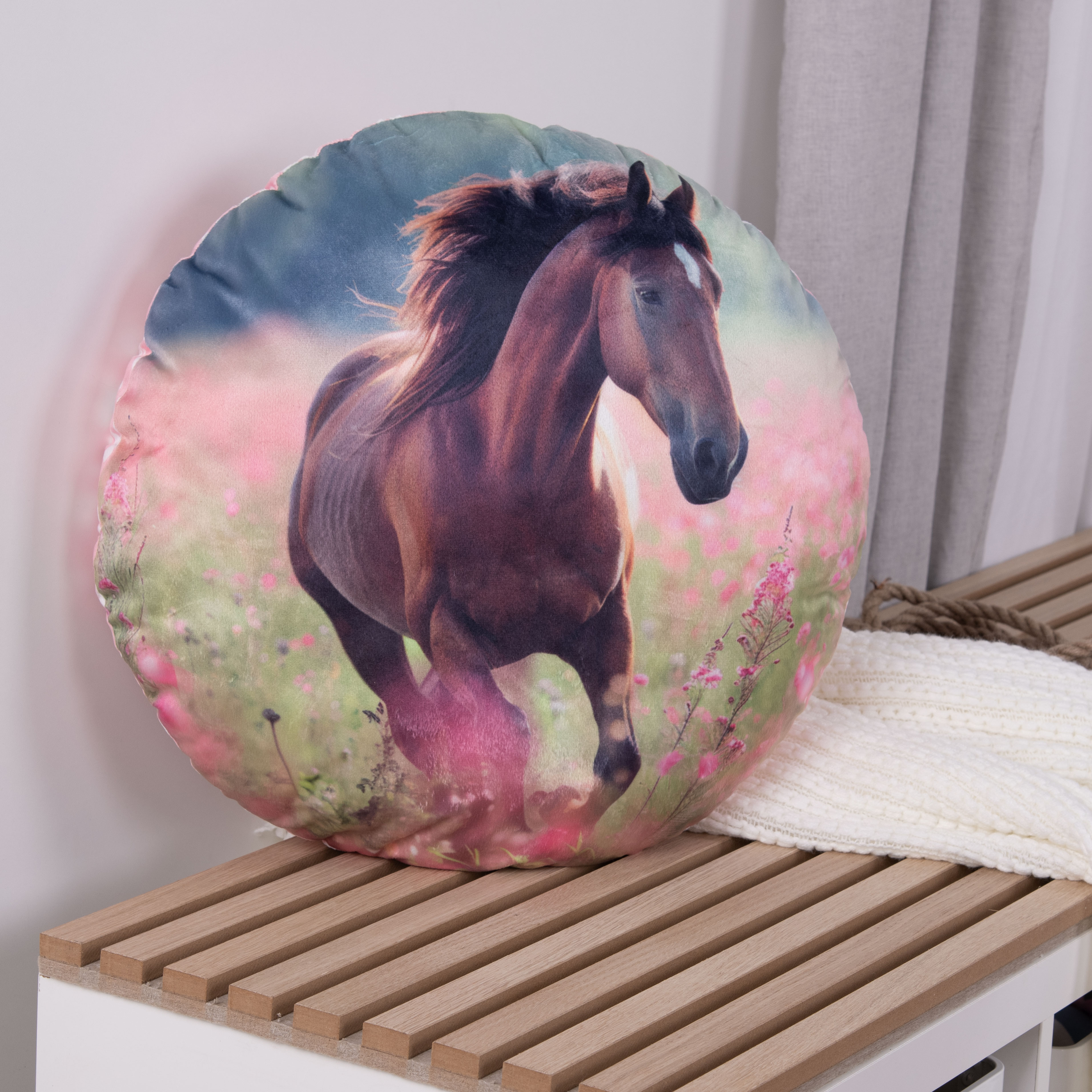 Startseite > Alle Produkte > Kissen > Formkissen > Young Collection Formkissen ‘Pferdeglück’ – Ø 50 cm, Soft Velboa