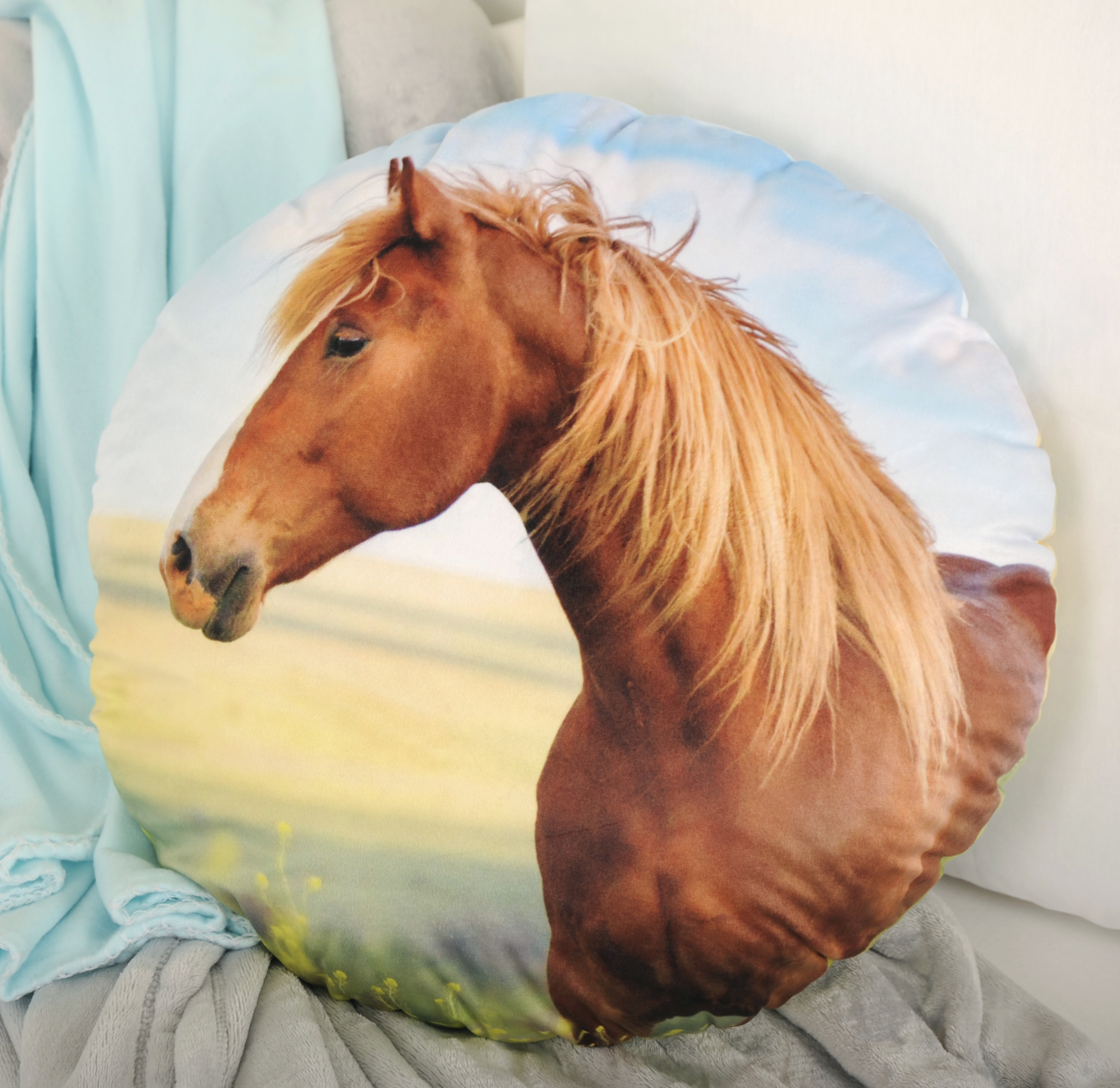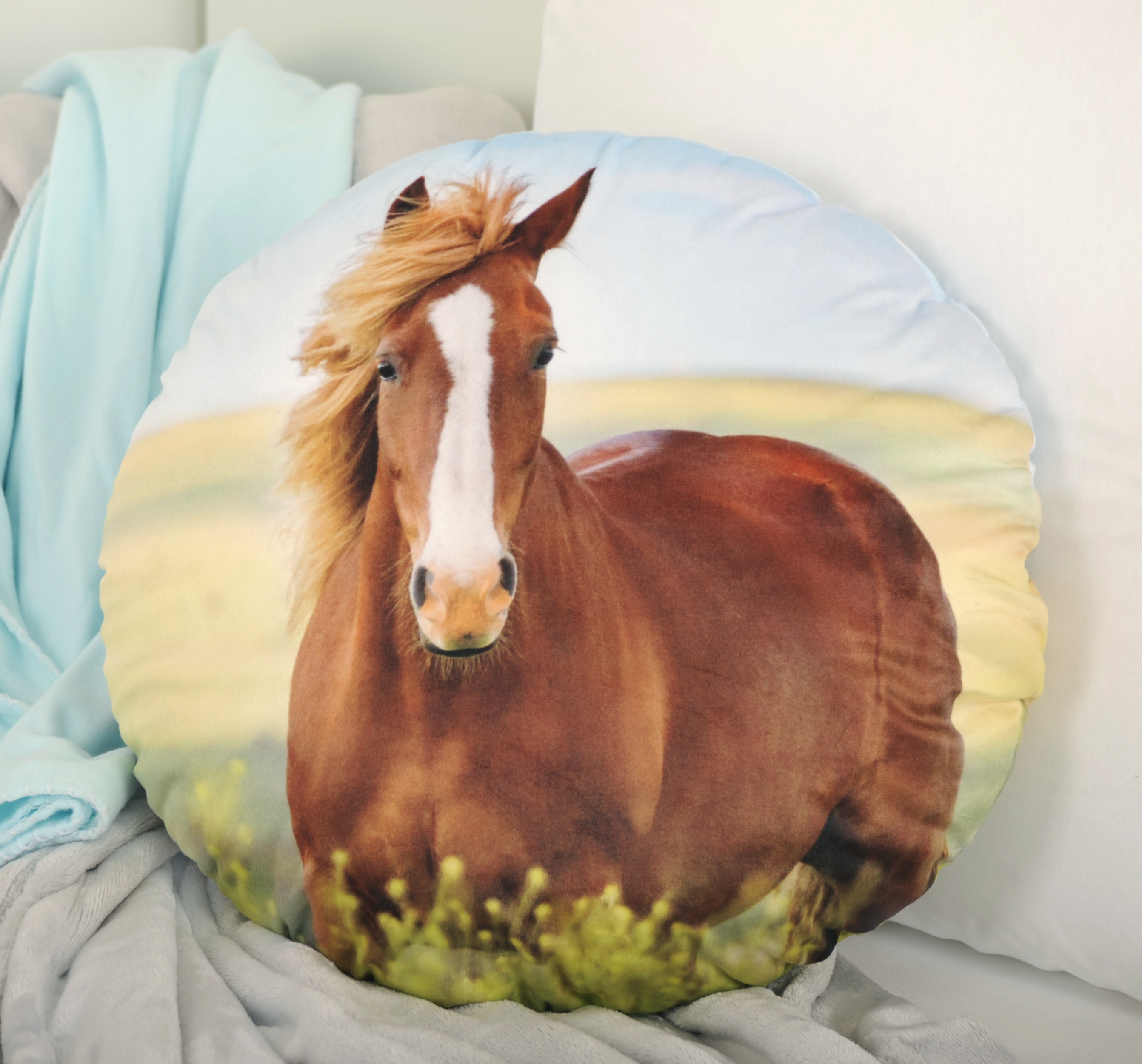 Startseite > Alle Produkte > Kissen > Formkissen > Young Collection Rundkissen ‘Pferd’ – Ø 50 cm, Soft-Velboa